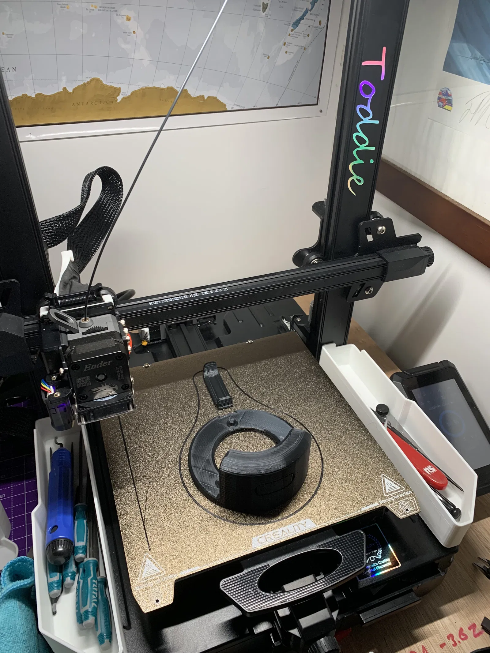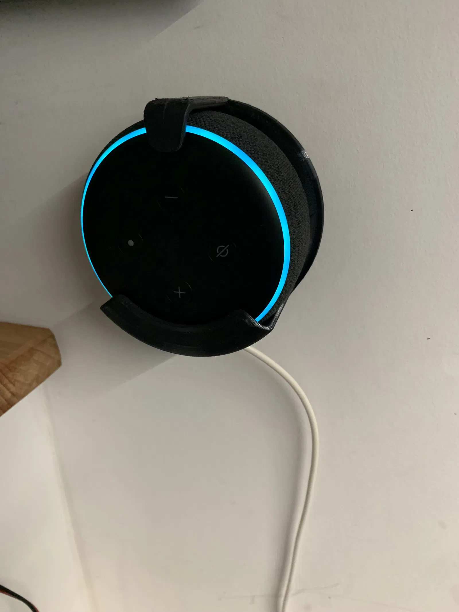 Tui muốn cái đế để giữ Alexa cố định (chắc mấy đứa nhỏ hay va vào hoặc lúc tui chạy xe ngoài đường) mà kiếm hoài không thấy cái nào ưng ý, nên tui tự vẽ cái của riêng mình luôn! Cái này có phần lõm ở mặt sau để đế bám chắc vào bề mặt thảm, 3 lỗ bắt vít chìm và có sẵn khe hở để 'phần trên' khớp vào 'phần đế'.