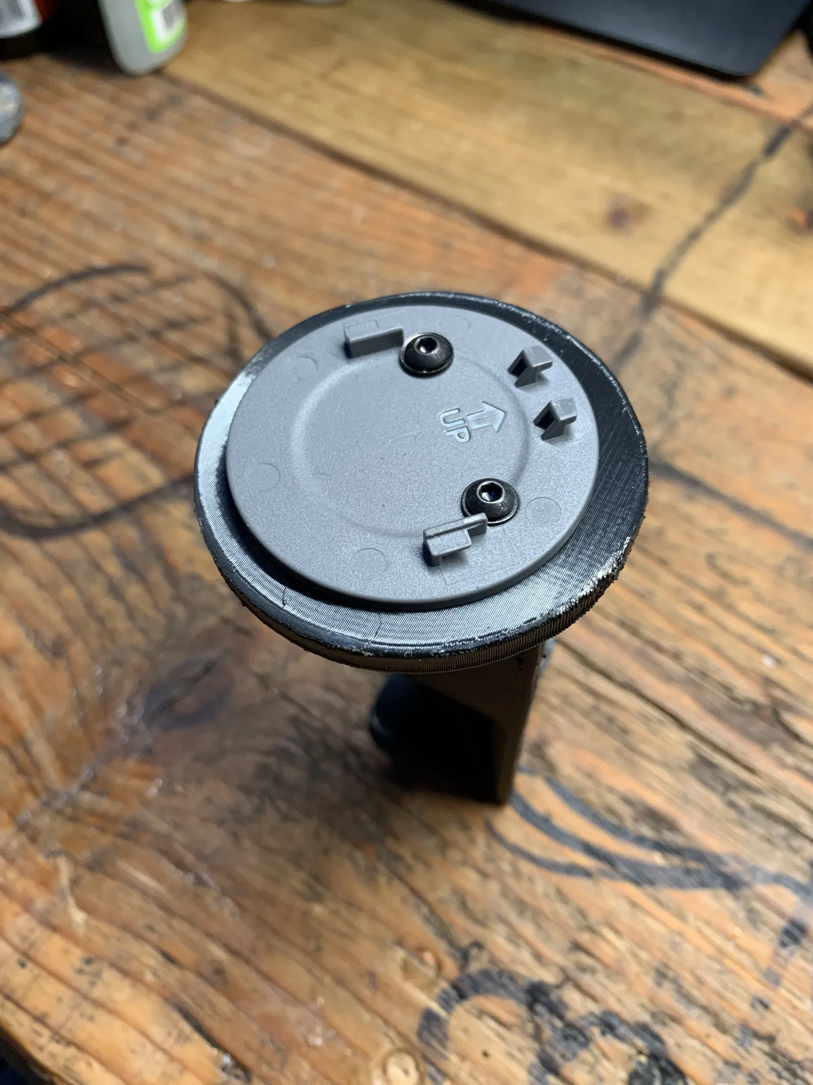 Cái đế gắn camera CCTV này nó trượt vô mấy khe bên hông trái của máy in và được cố định bằng mấy con ốc lục giác zin. Cái ngàm gắn camera Ring (màu xám) đi kèm theo camera được gắn vô cái đế in này bằng 2 cái ren cấy M3 x 7mm, em đã hơ nóng và ép vô. Dùng 2 con ốc lục giác M3 x 15 cùng với long đền để siết chặt lại rồi gắn camera vô vị trí.