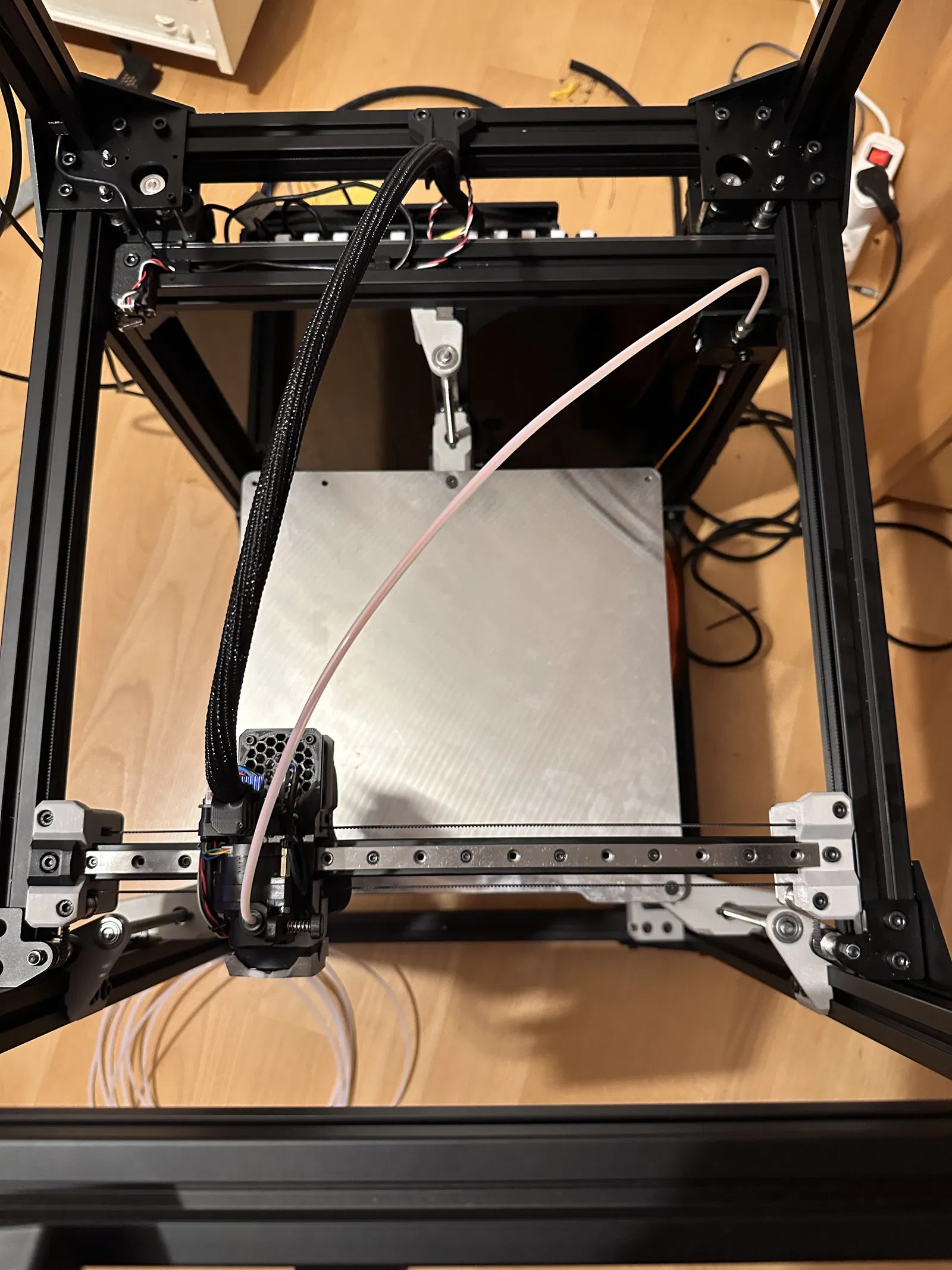 Như vậy thì ống PTFE sẽ đi lên ở góc và tránh được cả Toolhead lẫn mấy cái khớp nối trục X ở vị trí xa nhất có thể.