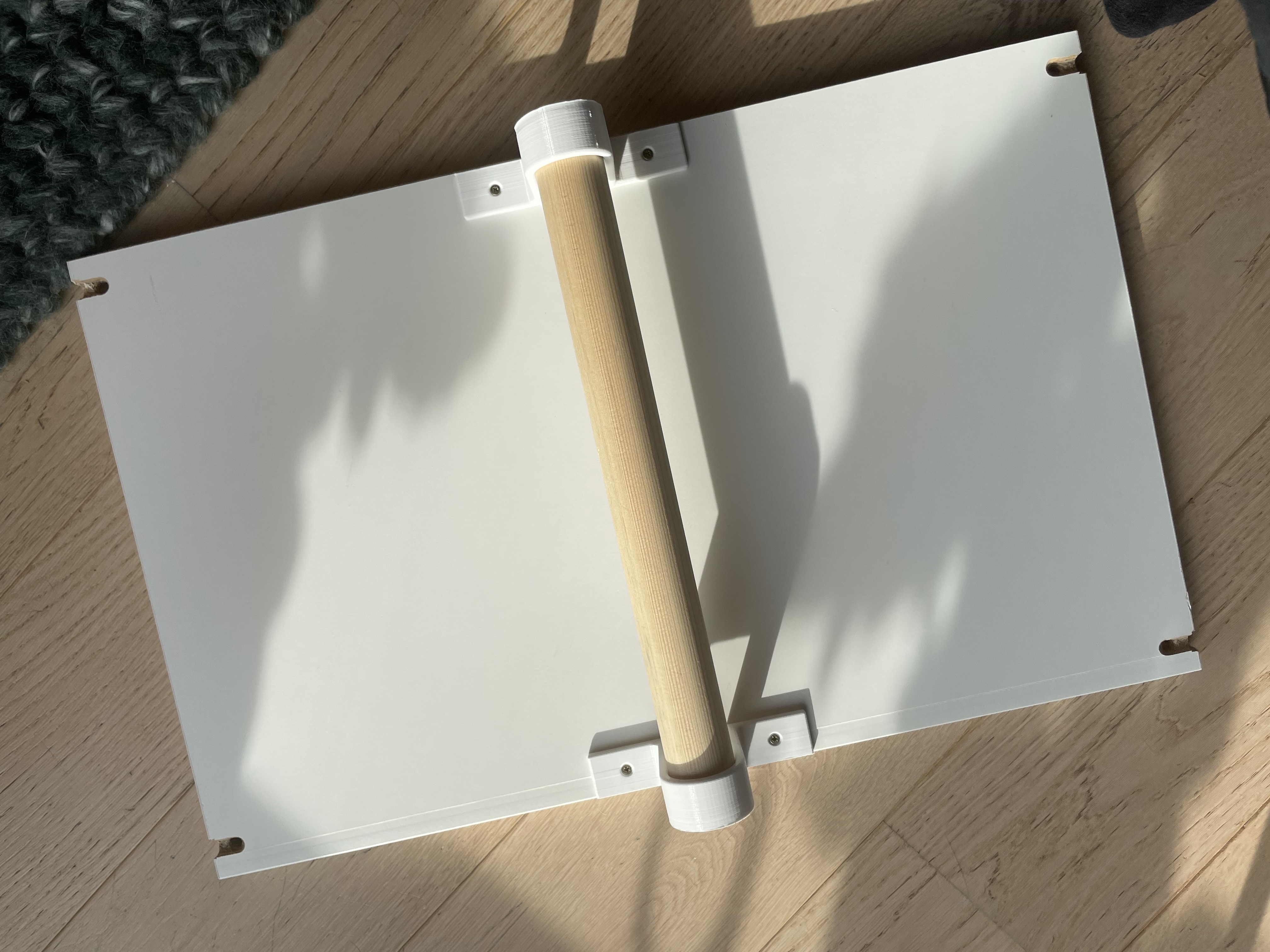 Giá treo quần áo đơn giản, phù hợp với mọi loại kệ hoặc tủ IKEA. Cho phép treo móc áo theo chiều ngang, gắn dưới kệ bằng vít gỗ và thanh tròn. Lưu ý kiểm tra độ dày kệ để siết vít.