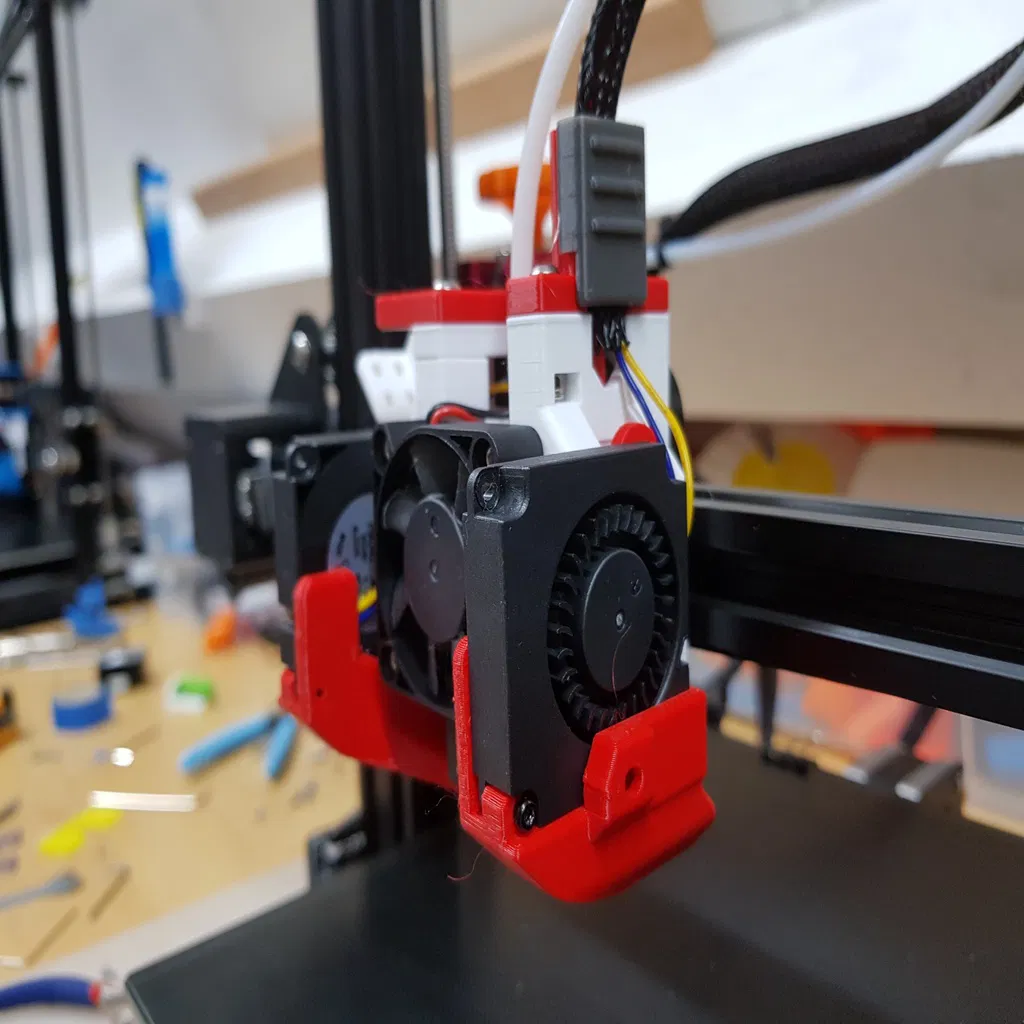 Mô hình Hydra Fan Duct & Tool Change System cho Ender 3, Ender 5 và CR10 cho phép thay đổi đầu đùn dễ dàng, tiếp cận đầu đùn thuận tiện và bảo trì đơn giản. Hệ thống ống dẫn quạt chắc chắn, có thể điều chỉnh độ cao và quản lý dây cáp tốt.
