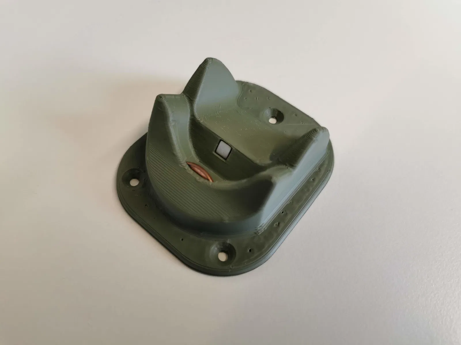 Dụng cụ mở nắp chai tối ưu để gắn dưới gầm bàn, sử dụng đồng 5 cent làm cạnh mở và nam châm 5x5x5mm để giữ nắp. Cần 3 con ốc để lắp đặt. In bằng PLA, không cần Support, 20% infill.