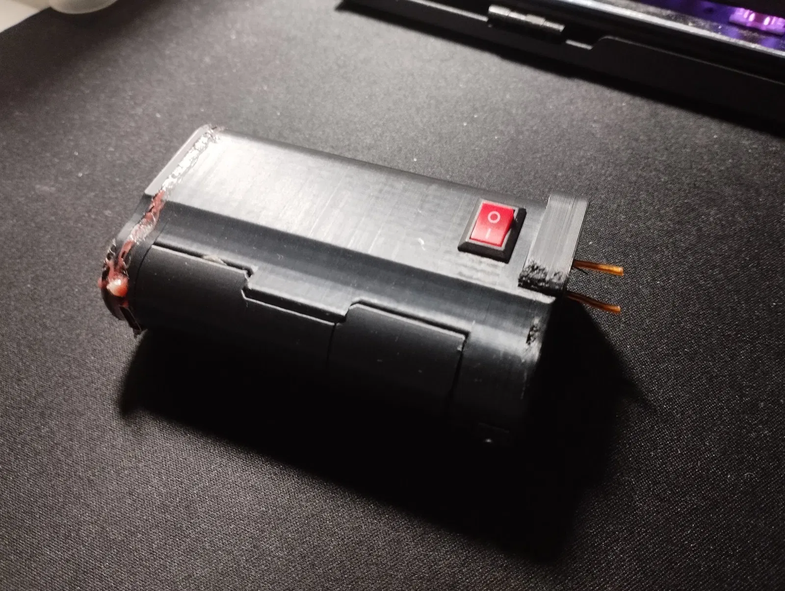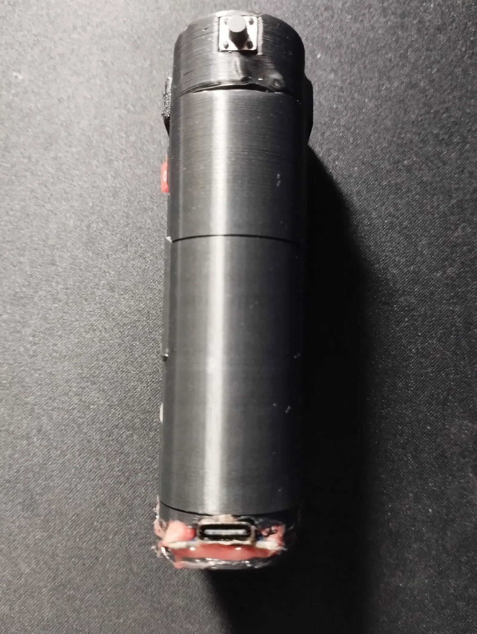 Mô hình taser tự chế này được in bằng PLA. Bản dịch này liệt kê các bộ phận cần thiết như module nguồn tăng áp, bảo vệ pin lithium 18650, nút nhấn và công tắc bật/tắt, cùng với thông tin về vật liệu in và nguồn pin.
