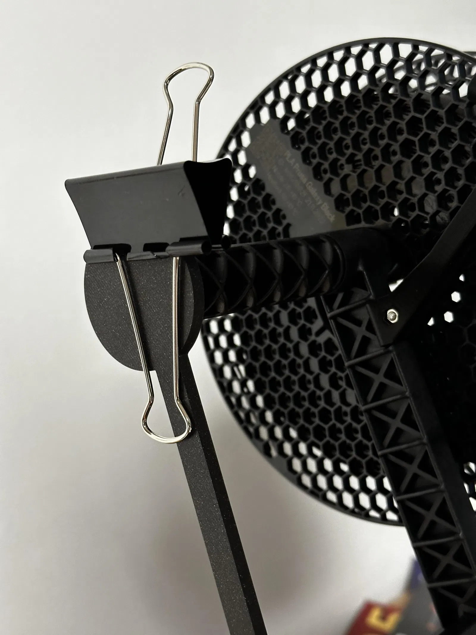 Giá đỡ dây tóc phụ trợ cho Prusa MK4, giúp giảm rung lắc cho khay đựng dây tóc và toàn bộ máy in. Giải pháp tạm thời bằng kẹp văn phòng cho hiệu quả tốt.