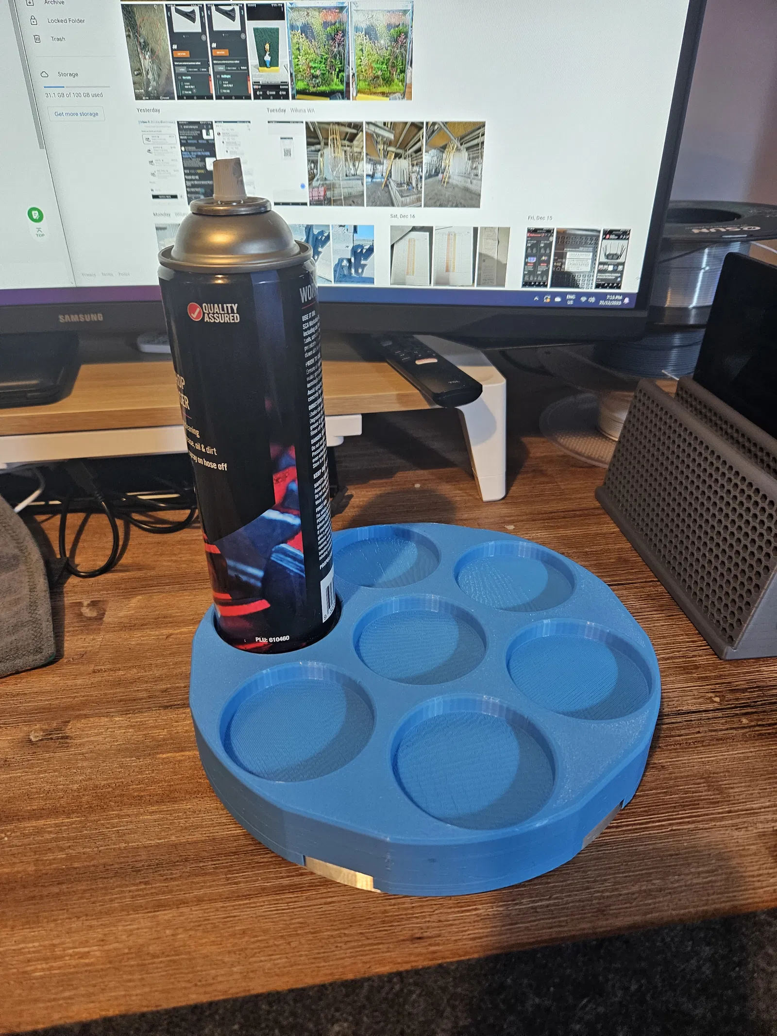 Đế xoay "Lazy Susan" này rất tiện lợi để cất giữ bình xịt hoặc hóa chất, phù hợp với các loại chai có đường kính tới 70mm. Giúp bạn lấy đồ dễ dàng trong tủ hoặc trên kệ. Cần 5 vòng bi 608 và in 2 mảnh.