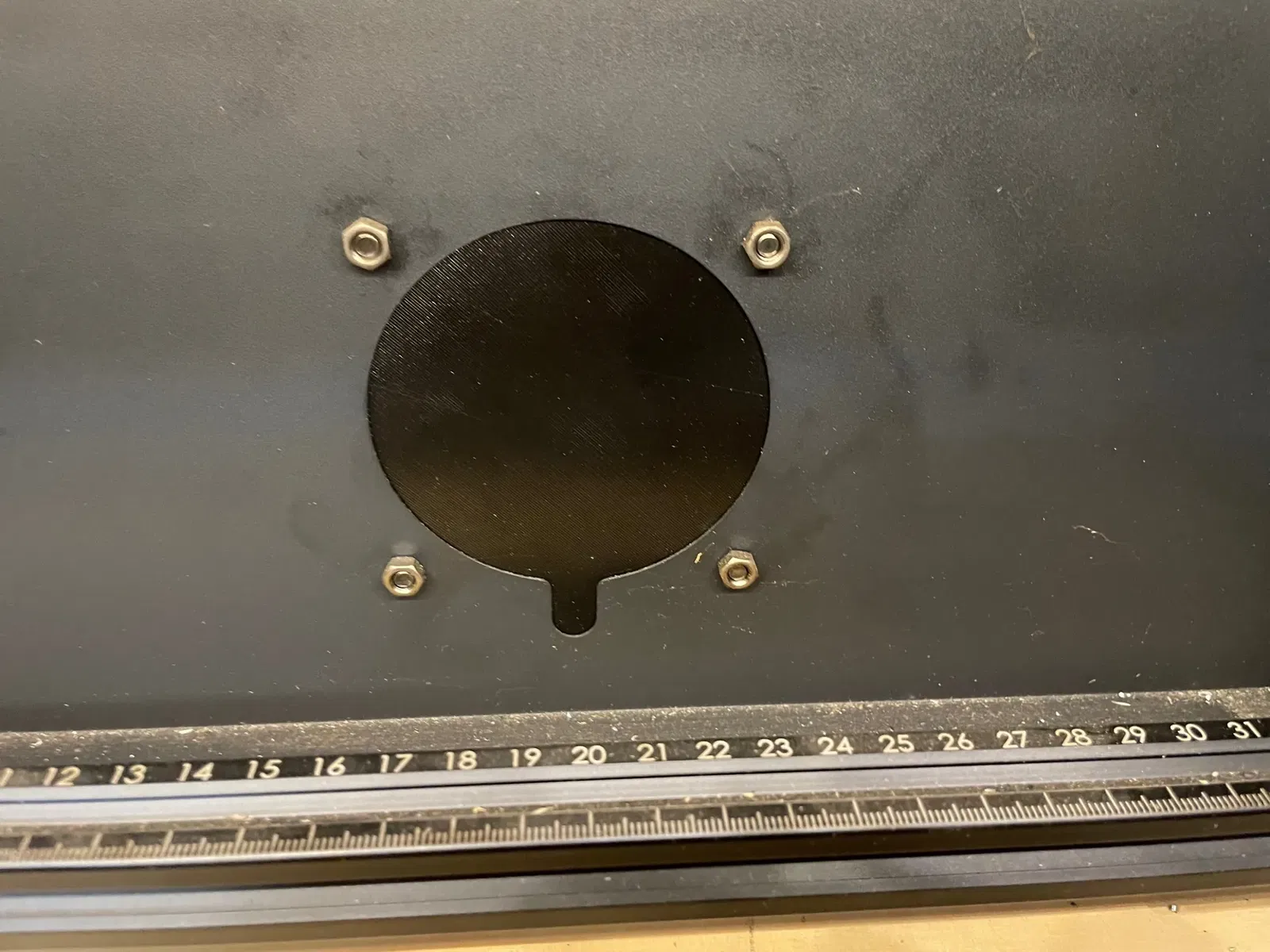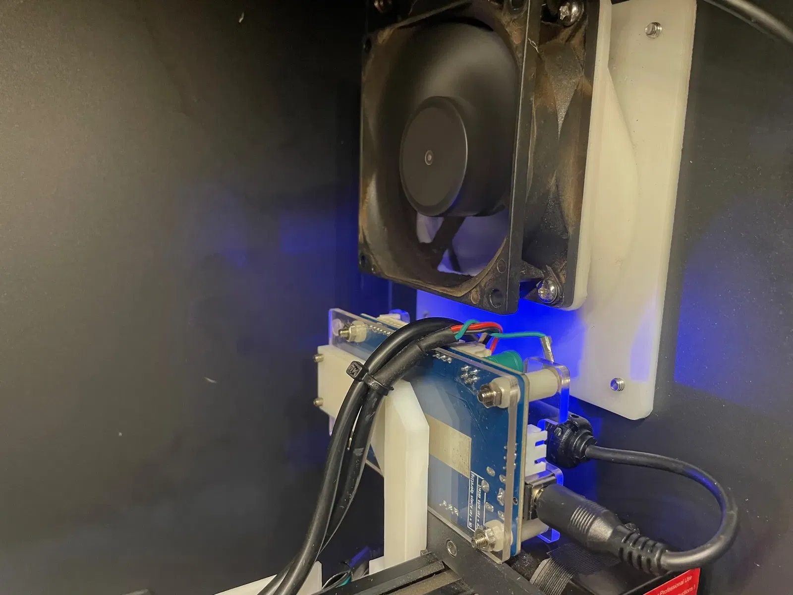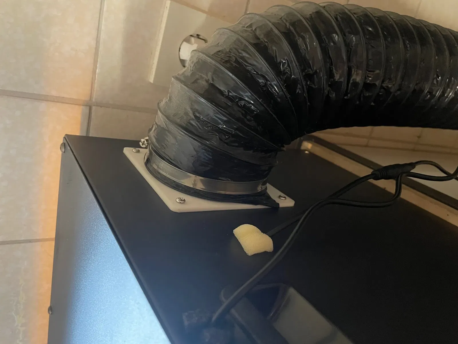 Chúng tôi đã lắp đặt Ortur LM2 Pro S2 của mình bên trong Enclosure Kim Loại Ortur nhưng muốn lỗ thông gió ở bên cạnh để có thể tiếp cận tốt hơn với thông gió của tường. Với nắp, bạn có thể đóng mở lỗ ban đầu. Sau đó, bạn phải cắt một lỗ hoàn toàn mới ở bên phải của vỏ kim loại. Chúng tôi đã làm lỗ này rộng 95mm. Bạn cần nắp như một mẫu để đánh dấu các lỗ mới cho việc lắp đặt cuối cùng. Chỗ hỗ trợ quạt 80mm là để lắp quạt 80mm bên trong. Lắp đặt theo cách mà khói từ laser được hút ra. Tất cả các lỗ nên được khoan với ren M3. Sử dụng 4x vít M3x9 để lắp quạt. Và sử dụng 4x vít M3x12 để vặn hai phần lại với nhau. Giá đỡ 100mm là để giữ ống flextube alu 102mm