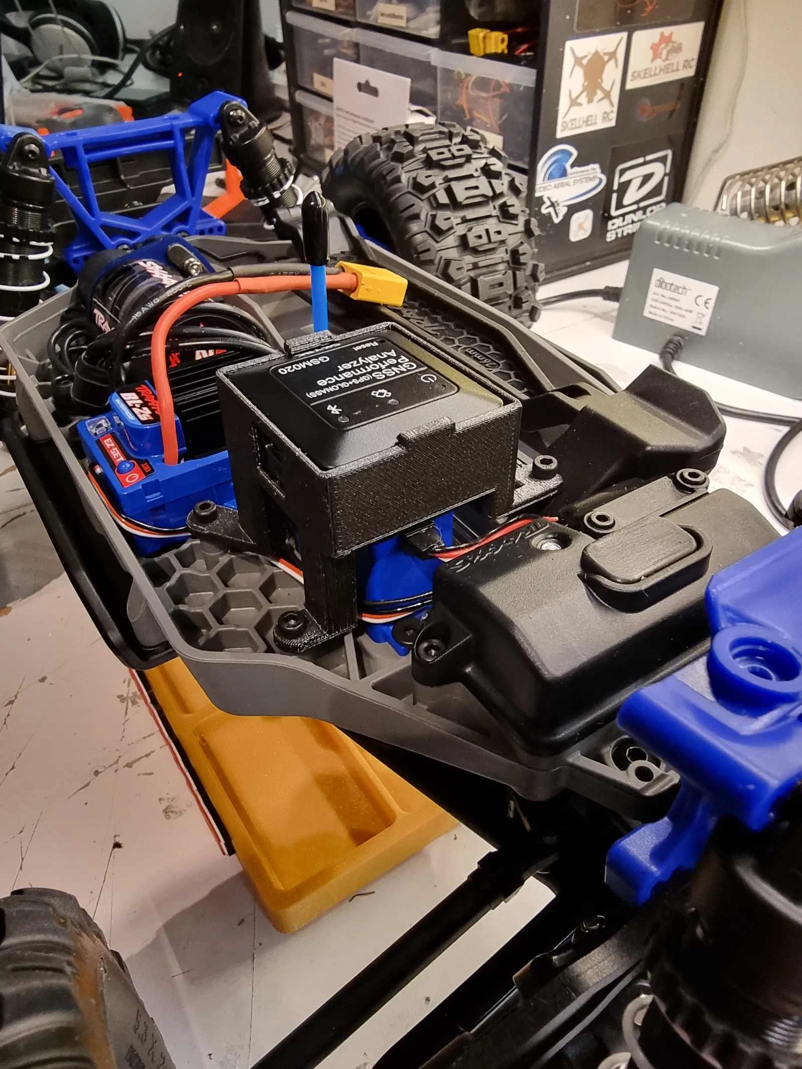 Tôi đã thiết kế cái đế này để gắn Cục Phân Tích Hiệu Suất SkyRC GNSS vào con Traxxas Stampede BL-2s ngay trên đầu servo lái luôn. Có thể là nó cũng dùng được cho con Traxxas Hoss 4x4 luôn đó, tại hai con này xài chung khung gầm, mã TRX9022.