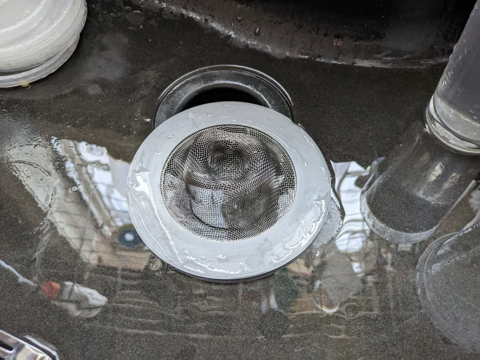 Tôi khuyên là nên xài nhựa chịu nhiệt cao để in cái này, ví dụ như ASA hay ABS á, chứ xài PLA là nó bị móp méo dữ lắm nếu mà có ai đó đổ nước sôi vô bồn đó nha (tui bị rồi, cái cục màu xám trong hình là bị nè. Tui có nghĩ tới vụ người ta đổ nước sôi vô bồn đâu. Con gái tui nhắc mới nhớ là có vụ đó xảy ra được).