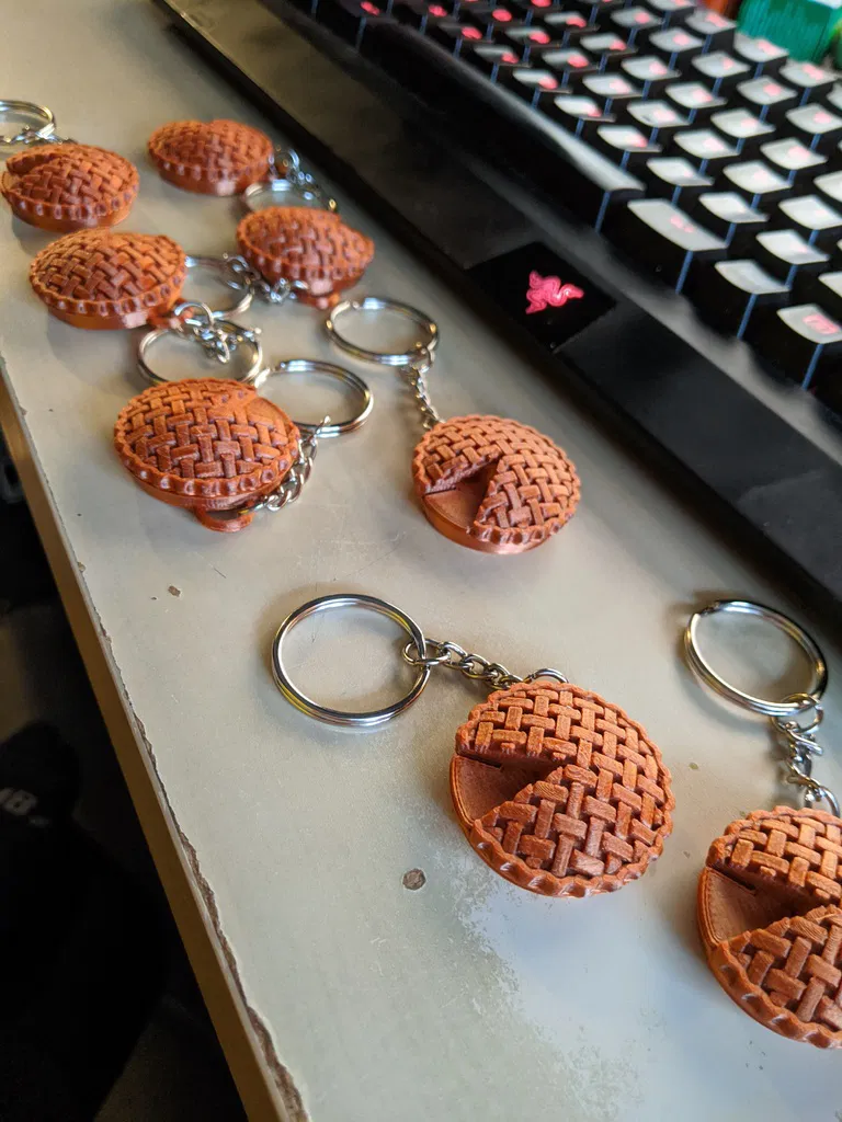 Cái dao cắt chỉ móc khóa hình miếng bánh này! Tôi làm nó làm quà tặng cho buổi hội trại đan lát nhân ngày Pi. Nó được thiết kế để dùng với lưỡi dao cắt tròn 28mm, bạn có thể mua ở các cửa hàng may vá hoặc thủ công.