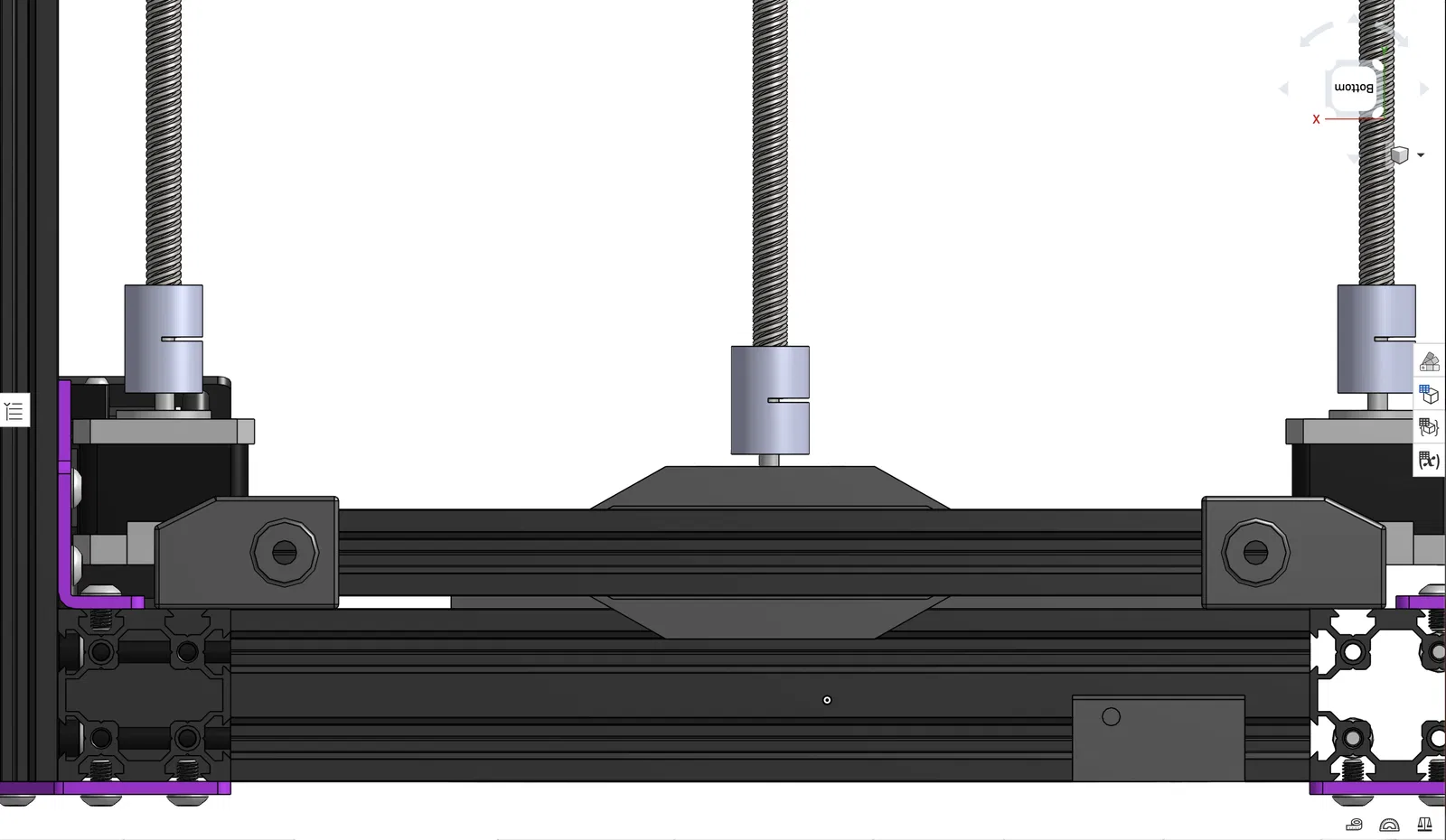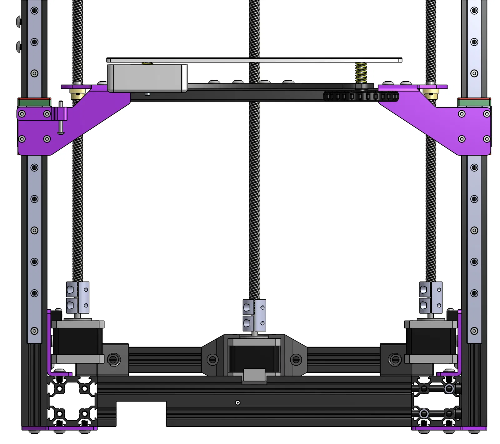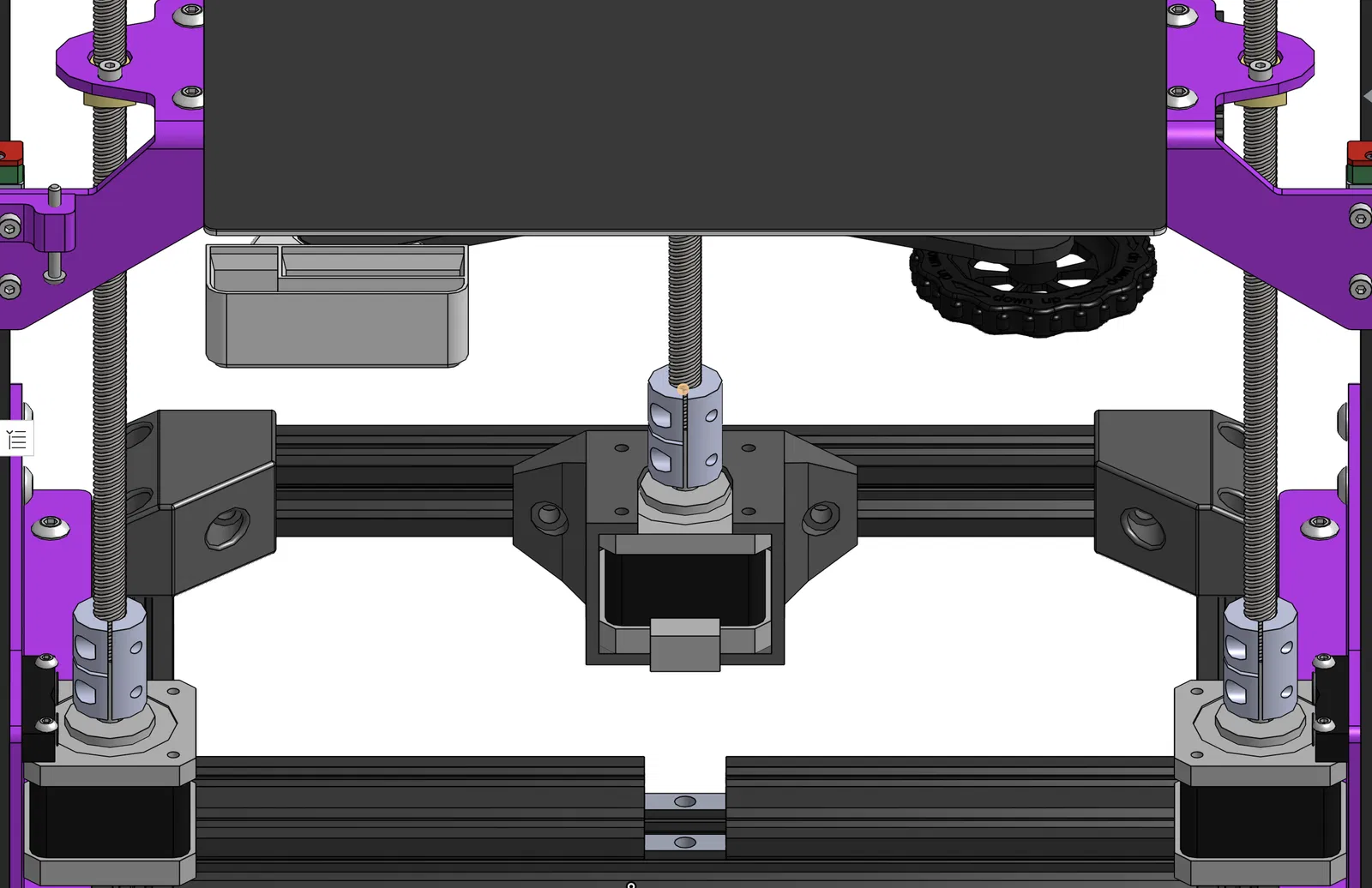 Thiết kế này đơn giản là gắn cái motor lên phía trên PSU bằng một thanh nhôm 2020 dài 250mm (kiếm mấy cái này trên Amazon rẻ lắm), rồi thu ngắn cái khoảng cách của trục vít me (lead screw) so với cái bàn in.