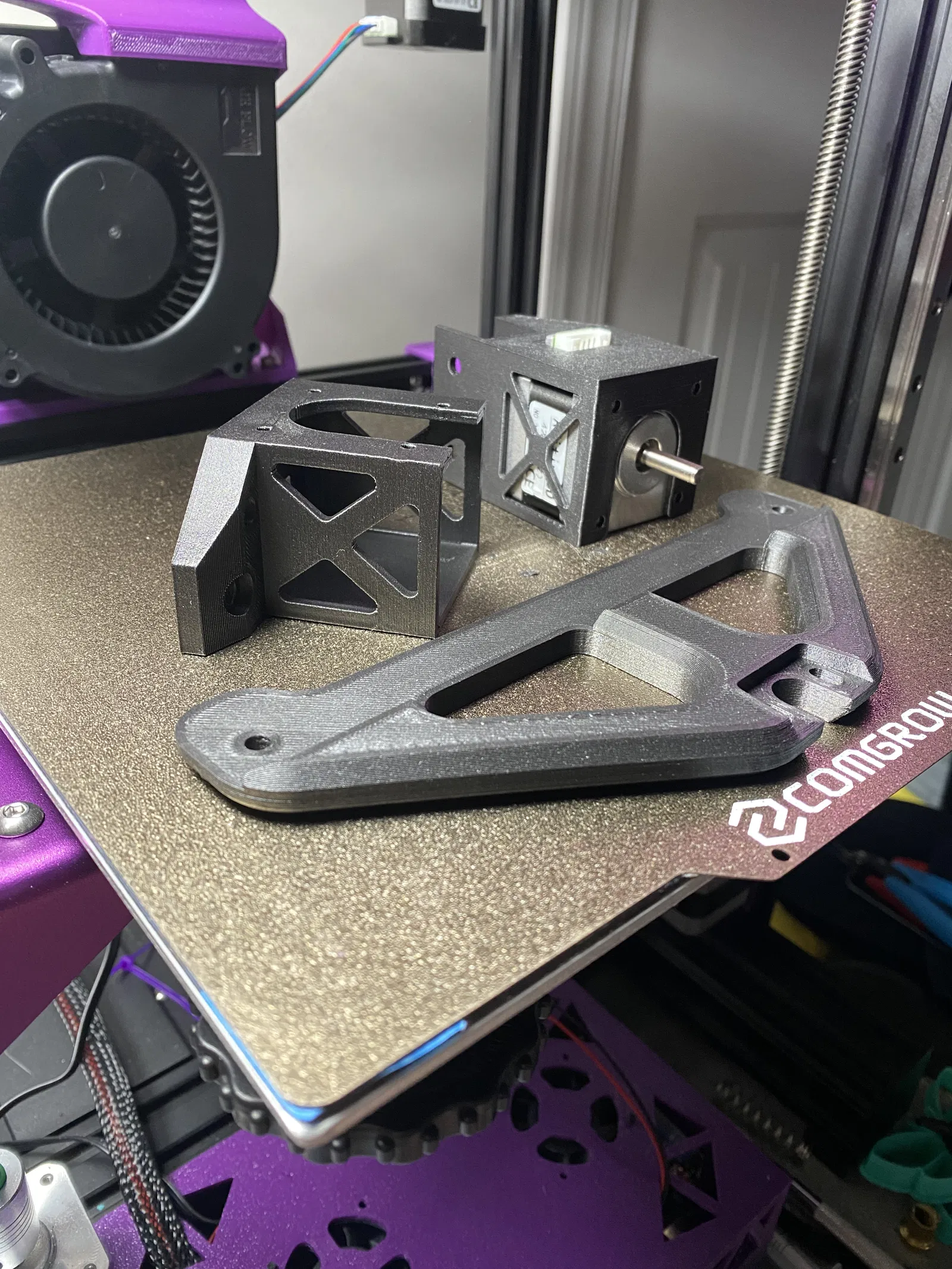- Tui khuyên bạn nên in ít nhất là bằng PETG. Tui đã in thử bằng PETG-CF rồi. Cân nhắc dùng ASA hoặc ABS nếu muốn cứng hơn/chịu nhiệt tốt hơn.