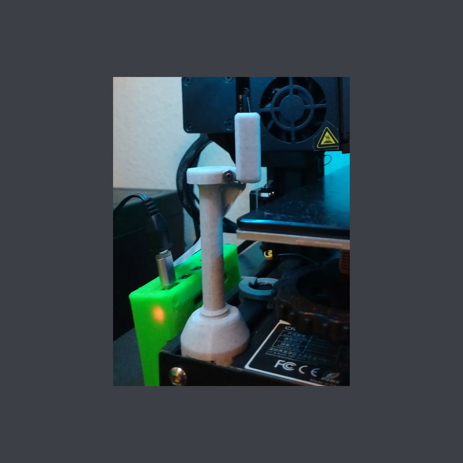 Đây là một cái vỏ đơn giản cho module camera Raspberry Pi v2, loại camera rẻ nhất, để gắn ở ngang mặt bàn in trên máy Creality. Tôi dùng nó trên máy Creality Ender 3 Pro của mình - chỉ cần nới lỏng tấm phía trước trên rãnh nhôm và trượt giá đỡ camera vào vị trí. Có thể xoay và nghiêng bằng tay sau khi gắn. Dung sai cho ren vít đã được bao gồm nên không cần điều chỉnh khi cắt lớp.