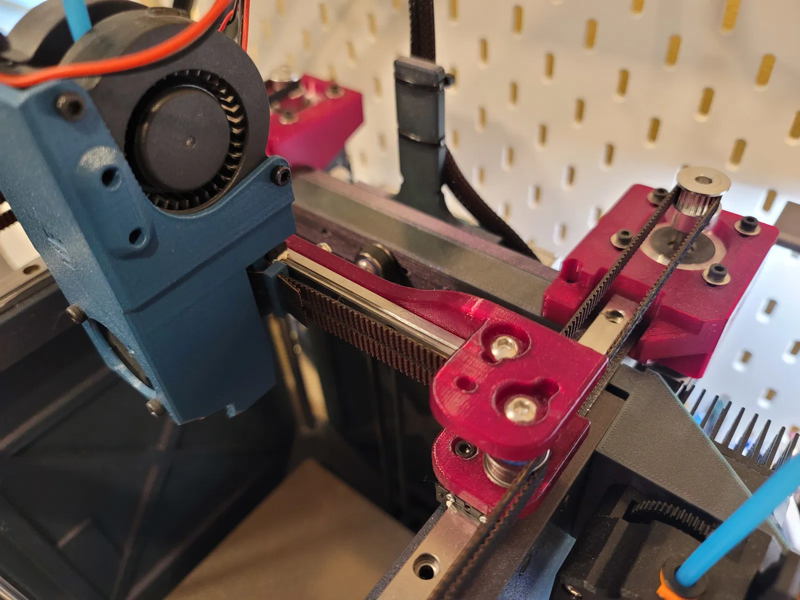 Tui thấy cái trụ dọc hai bên (XY gantry towers) đụng vô cái đế gắn motor trước khi cái đầu in (toolhead) đụng vô mấy cái vật cản khác (cụ thể là cái tăng đưa dây Z - Z-belt idler) nên tui cắt bỏ một phần của mỗi đế để nó nhích ra phía sau thêm chút. Dùng cái trụ dọc X của mod Gulsifer lúc trước thì giờ nó sẽ nhích ra được thêm khoảng 1 cm nữa đó.