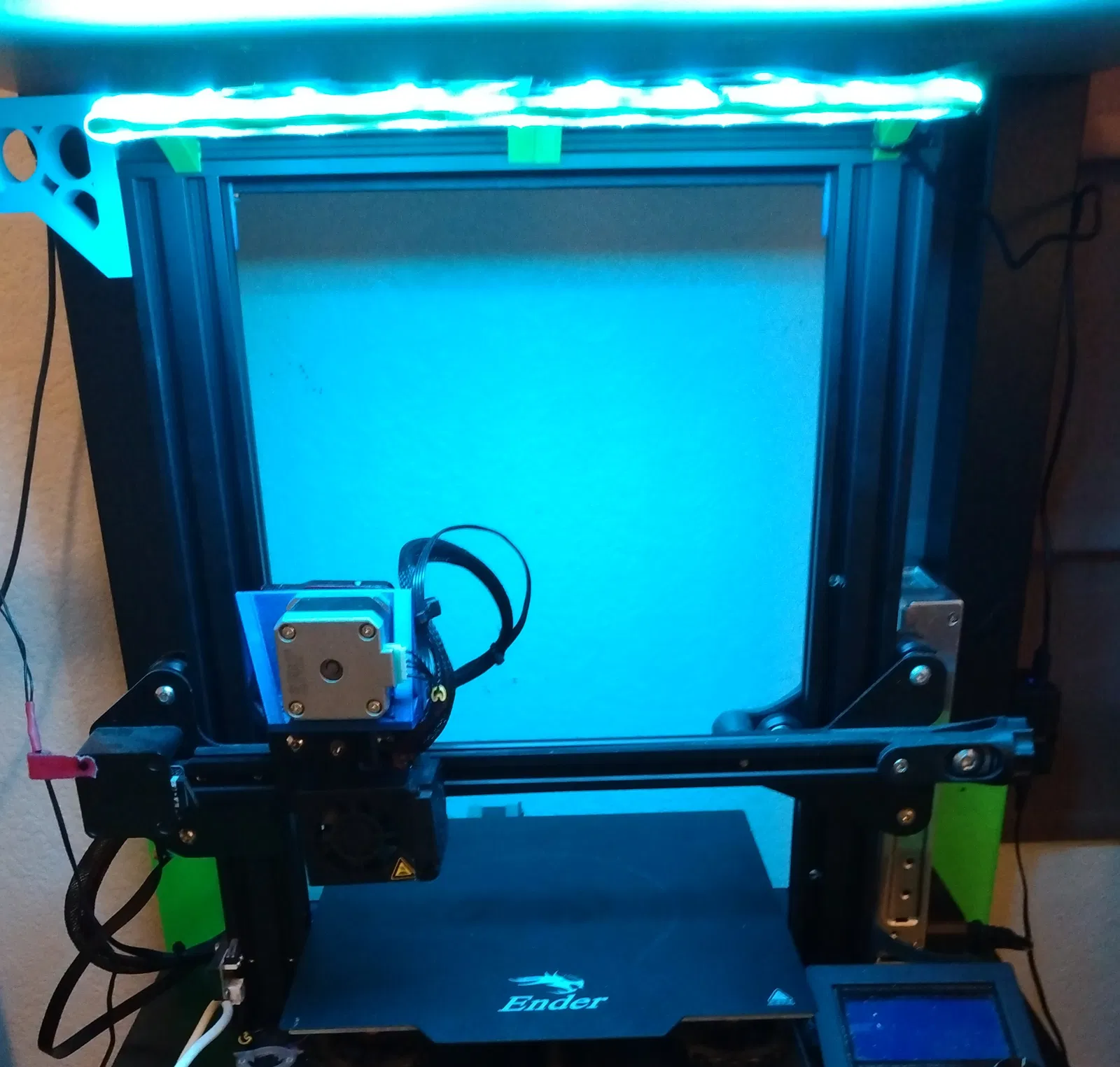 Tui có mua một cuộn dây đèn LED Lumastrip ở tiệm gần nhà với giá chưa tới 10 đô và gắn nó lên cái khung đèn mà tui tự làm nè. Vì cái khay máy in Ender3 Pro của tui chỉ có 235mm, nên tui phải chia đôi cái thanh đèn ra vì tổng chiều dài của nó là 300mm.