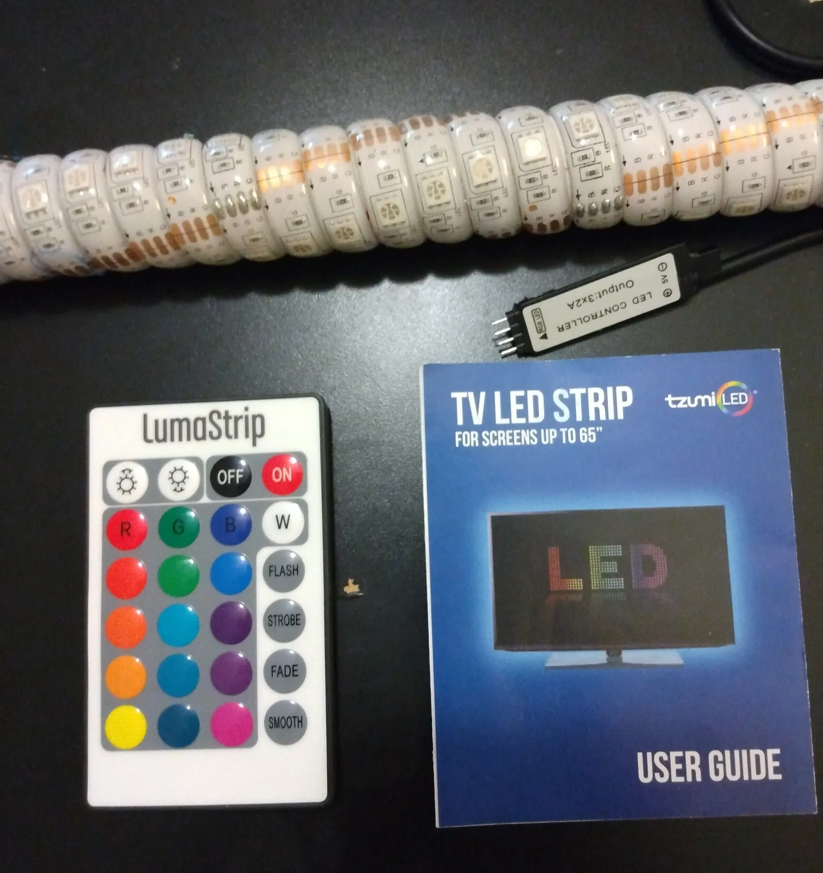 Một cách là cắt 4 đoạn dây đèn LED bằng nhau và gắn chúng lên khung đèn đã dán lại, rồi gắn cái bộ điều khiển lên trên cái khung.