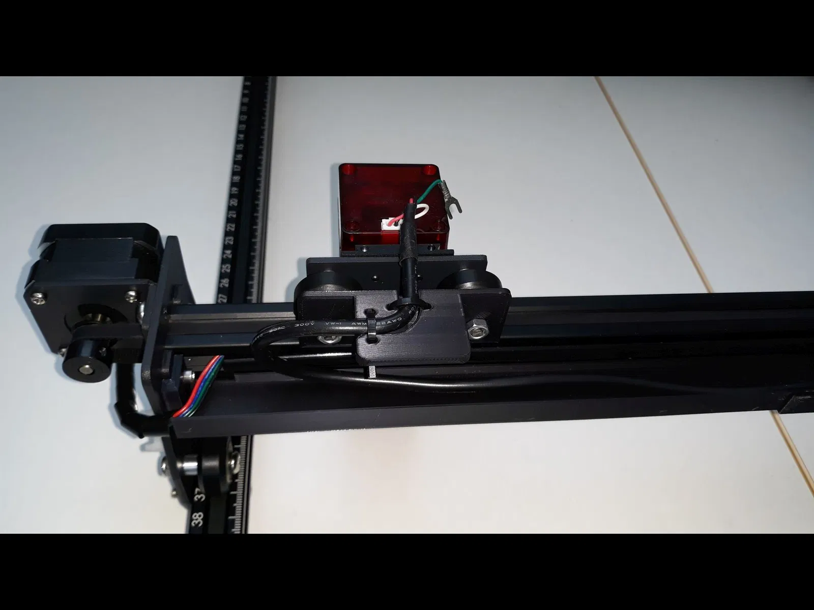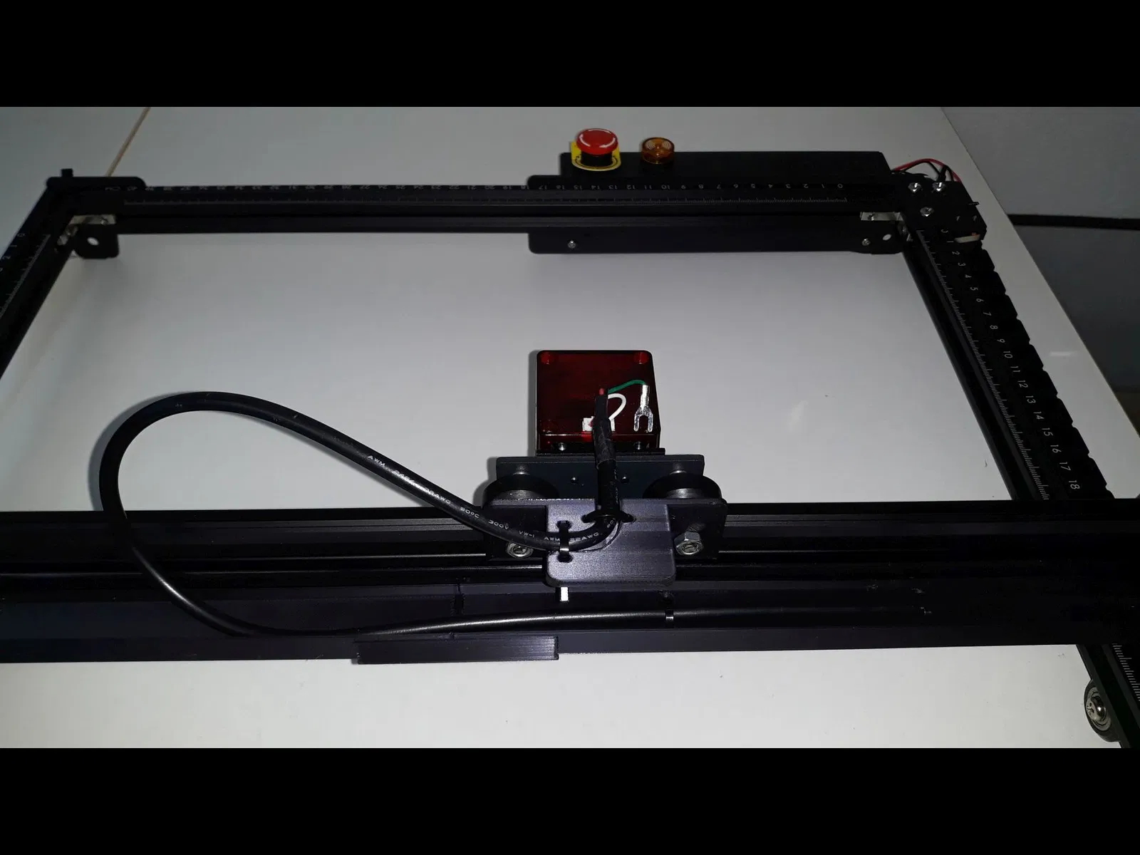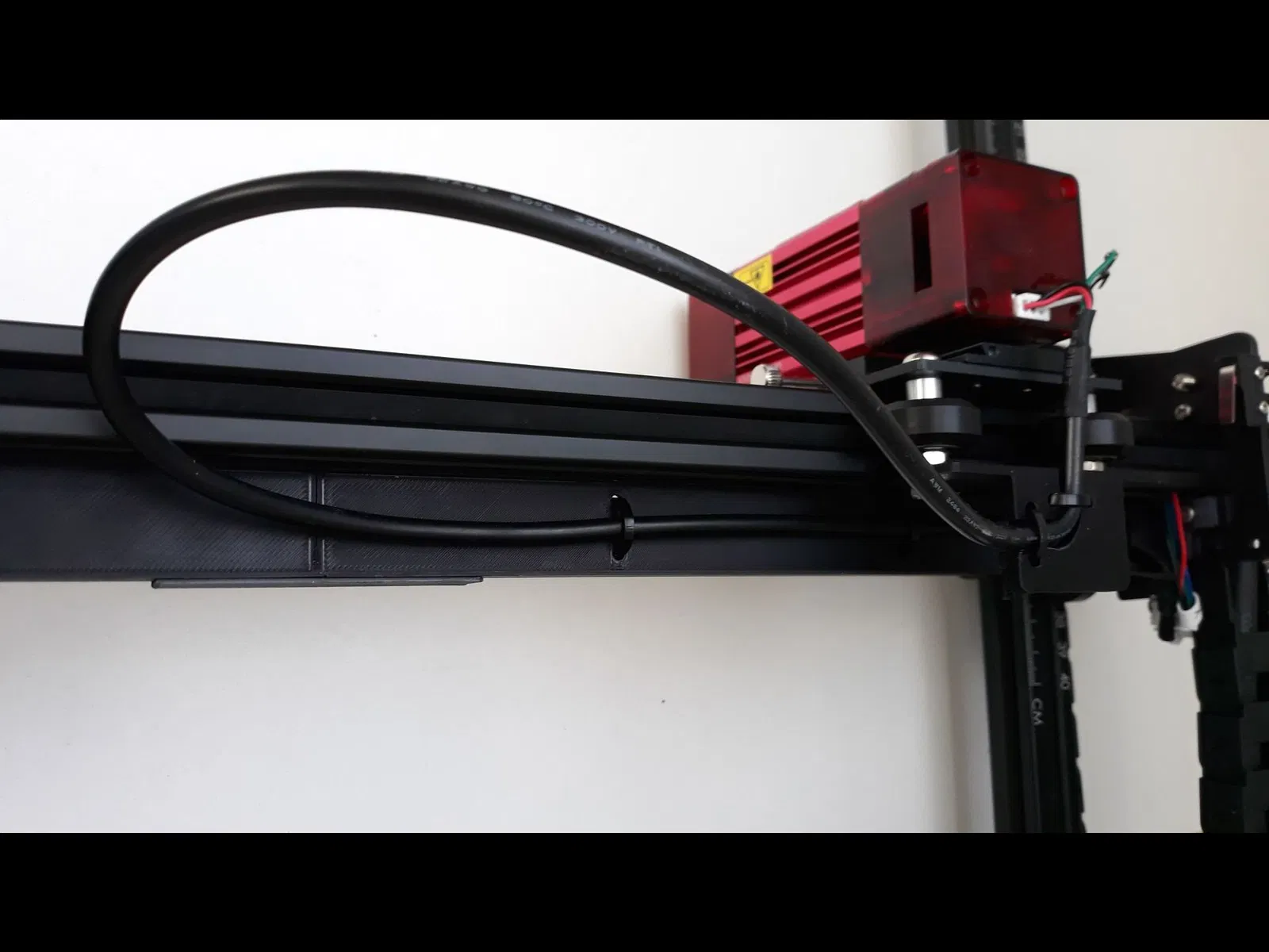 Mệt mỏi vì dây cáp module laser của Ortur Laser Master 2 Pro bị xệ, tui đã chế cái giá đỡ cáp. Phiên bản v2 có thành dày hơn và vách ngăn cho AirAssist. Phiên bản v3 chỉnh sửa để khớp hơn và có khớp nối chắc chắn hơn, tránh bị oằn ở giữa.