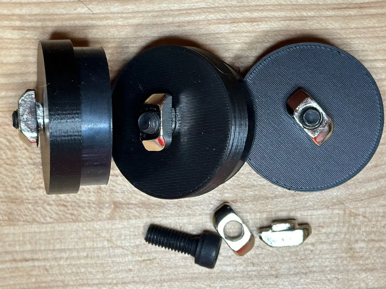 Mấy cái đế này gắn vô thanh nhôm 30x30 nha, rồi siết ốc lục giác M6 x 10mm là được. Phần giảm rung thì dùng mấy cái đế cao su chống rung đường kính 1 ½ inch này nè: