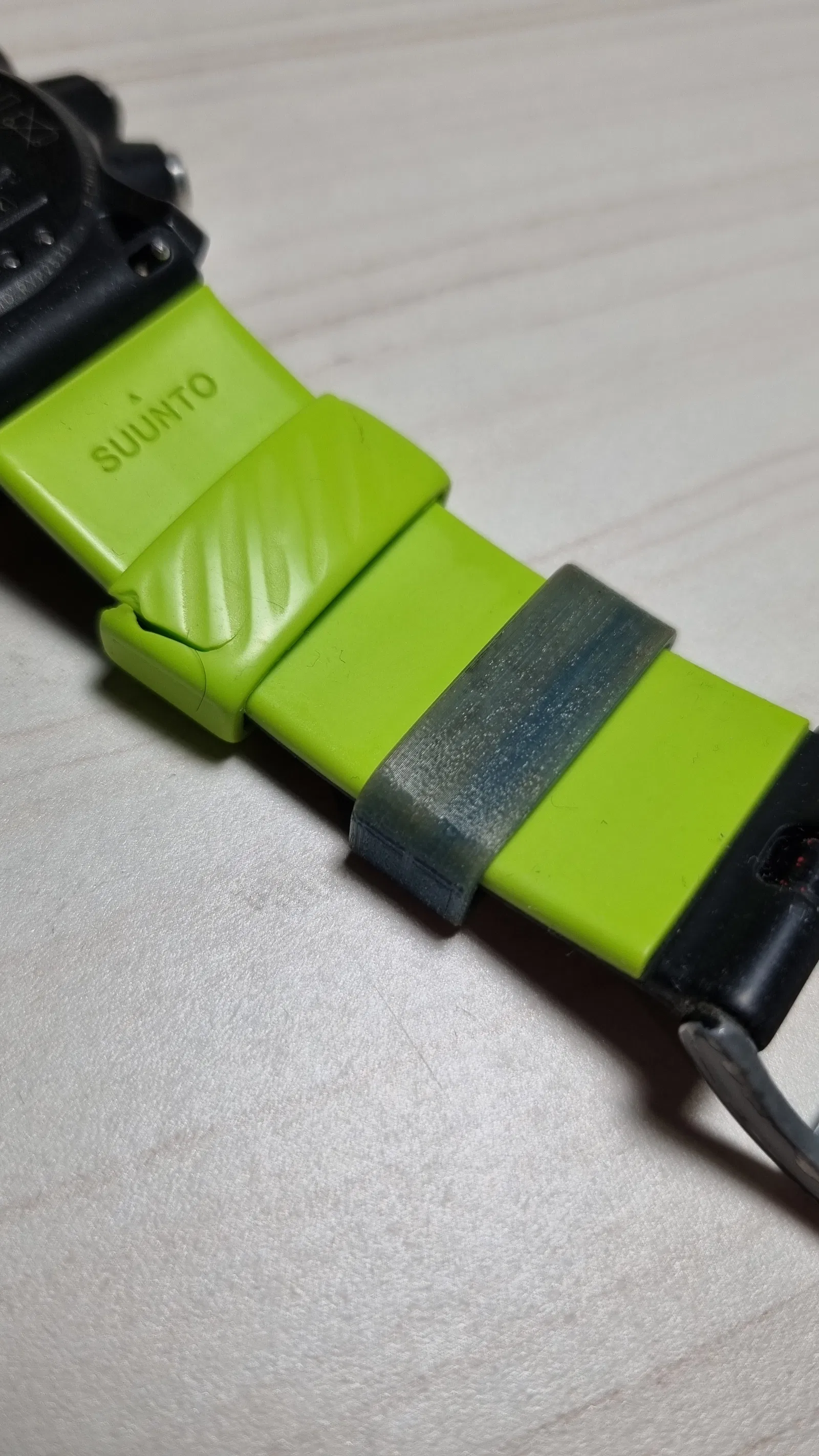Vòng khóa dây Suunto 9 TPU. Trong ảnh thấy nó đã xấu rồi, nhưng còn nguyên so với cái zin. Dùng để thay thế vòng khóa dây đồng hồ Suunto 9 bị hư, giúp đồng hồ của bạn trông như mới.