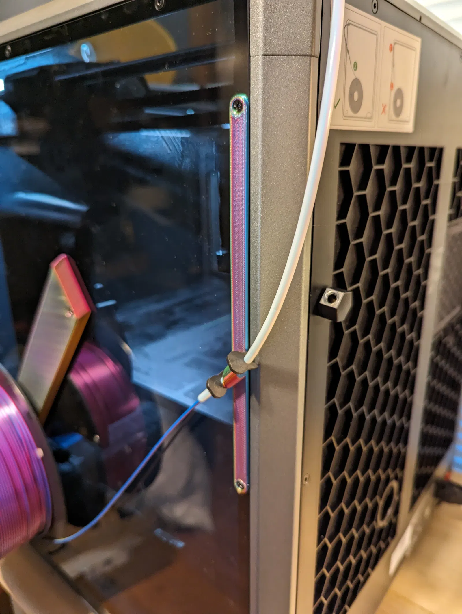 Bộ phận nhỏ này giúp dẫn ống Bowden tốt hơn khi sử dụng giá đỡ spool bên hông cho máy in Creality K1 và K1 Max. Cần 2 ốc M3x6mm để lắp đặt. Đã in thử bằng PLA.
