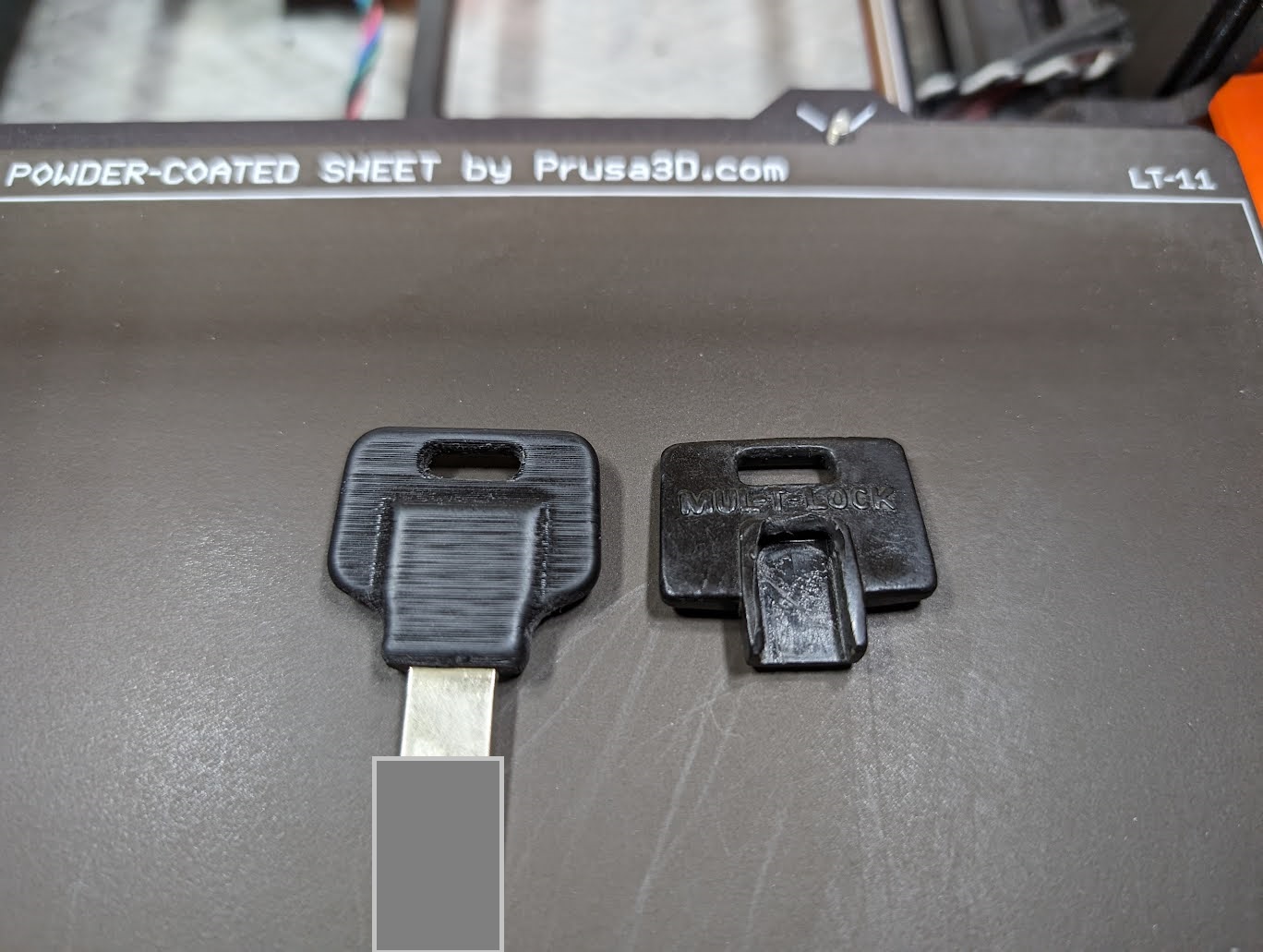 Nó vừa với phần chìa khóa hình chữ nhật có kích thước khoảng 9mm x 2.4mm x 50mm (ví dụ: chìa khóa Mul-T-Lock cũ 20 năm tuổi).