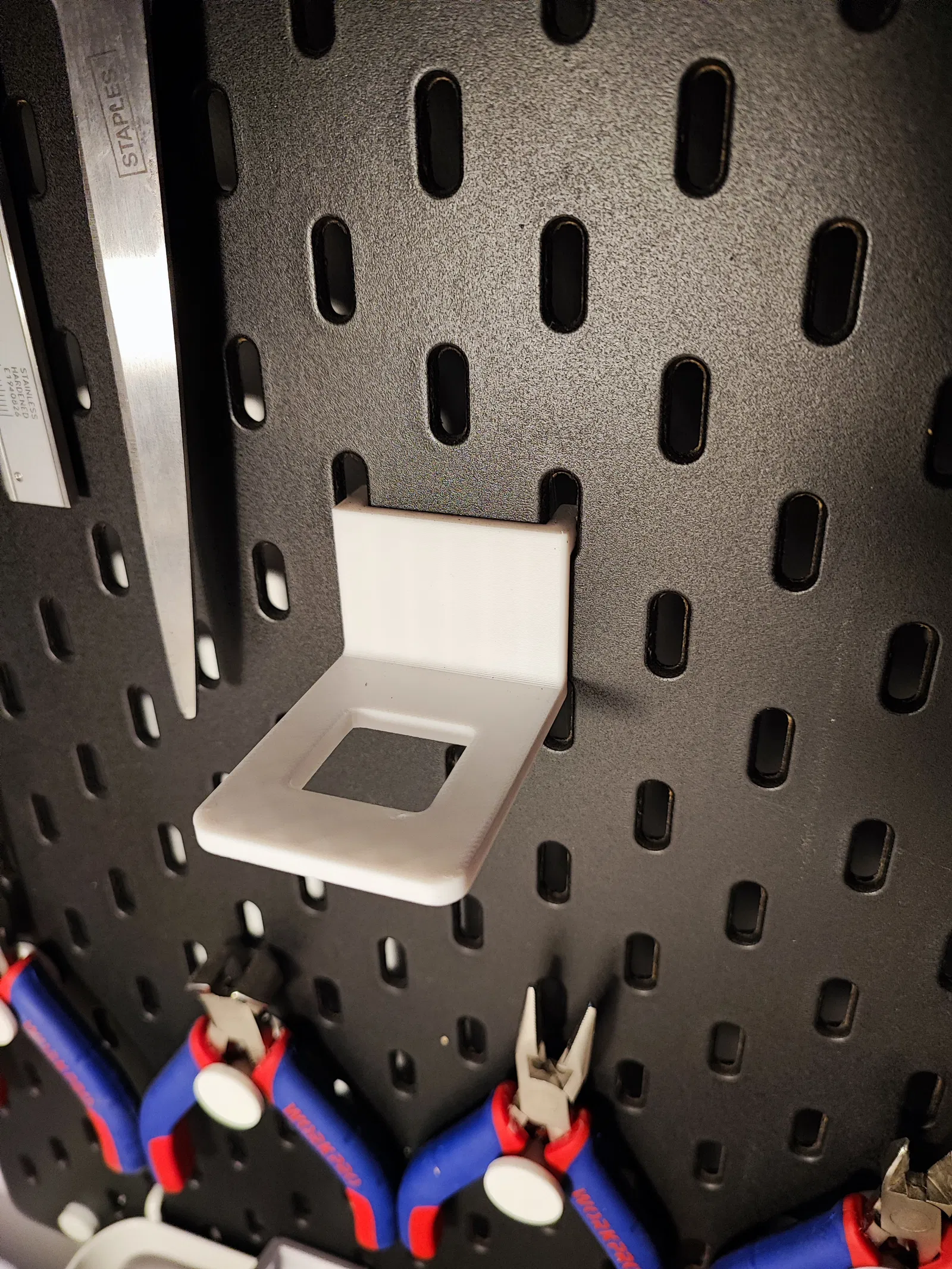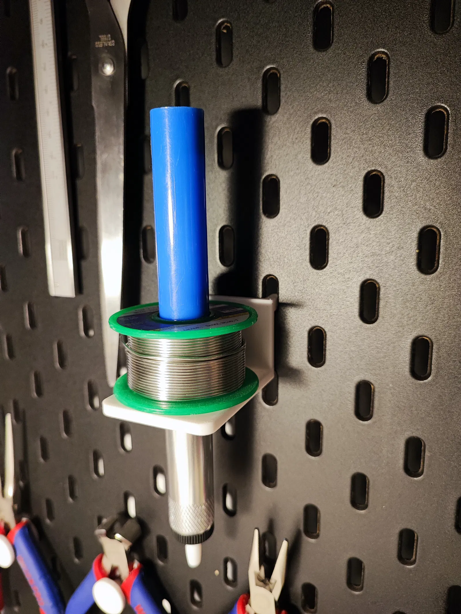 Giá đỡ cho máy hút thiếc và thiếc hàn Skadis. Sản phẩm này giúp bạn giữ gọn gàng máy hút thiếc và thiếc hàn trên bảng Skadis, rất tiện lợi cho công việc sửa chữa hoặc lắp ráp.