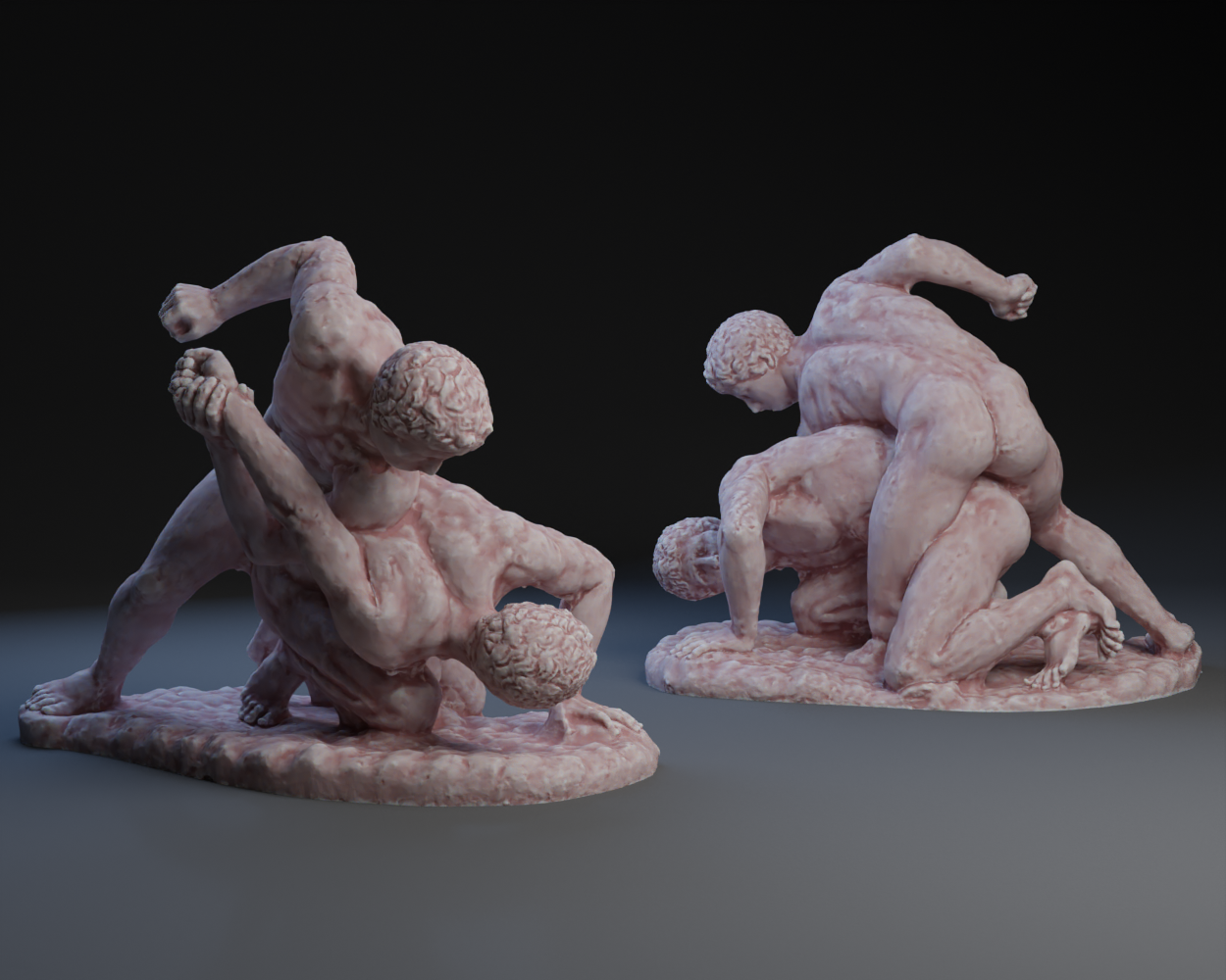 Nhóm điêu khắc được phát hiện ở Rome vào cuối thế kỷ 16, mô tả hai đô vật trong thời điểm diễn ra cuộc đụng độ. Trước đây, tác phẩm được cho là của một số nghệ sĩ quan trọng nhất thời cổ đại, nhưng các nghiên cứu sau này đã khiến các nhà sử học tin rằng đây là một bản sao từ thời đế chế La Mã, được tạo ra từ một tác phẩm bằng đồng thời Hy Lạp hóa. Phân tích tác phẩm điêu khắc cho thấy không có chiếc đầu nào thuộc về nhóm nguyên gốc: việc bổ sung sau này sẽ hoàn toàn phù hợp với thực tiễn của người La Mã trong việc hợp nhất các bộ phận rời rạc từ các bức tượng khác nhau thành một nhóm duy nhất. Tác phẩm hiện đang được trưng bày tại Phòng trưng bày Uffizi ở Florence.