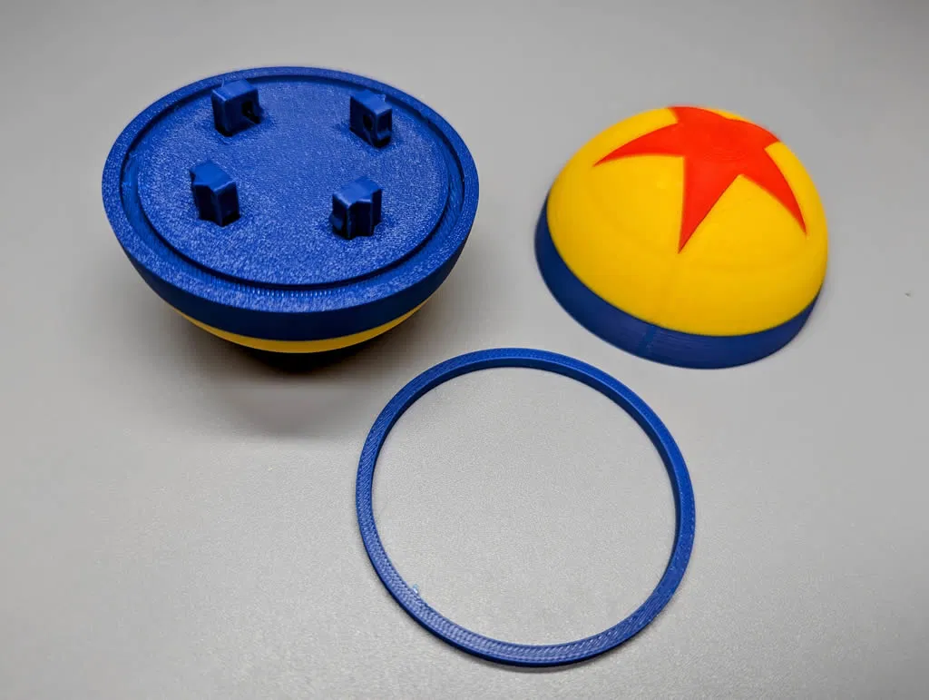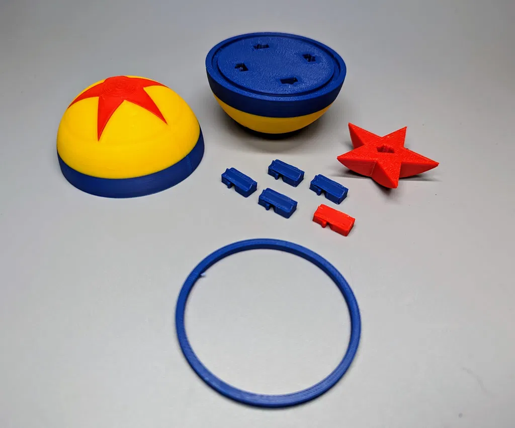 Một quả bóng theo chủ đề Pixar Luxo Jr. không cần AMS, AMS Lite, MMU hay bất kỳ bộ thay đổi vật liệu tự động nào khác. Các bộ phận được giữ với nhau bằng các chốt khóa nhỏ. Không cần keo dán. Kích thước bóng 70mm rất lý tưởng để tung hứng và quả bóng golf 42.67mm là một món đồ chơi vui nhộn cho mèo/trẻ em/người lớn. Nên giám sát nếu bạn định sử dụng chúng làm đồ chơi cho mèo, trẻ em hoặc người lớn.
