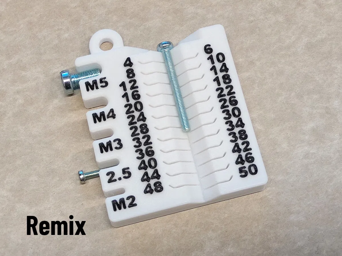 Đây là bản remix của dụng cụ đo đinh ốc và ecu metric, với các lỗ lục giác để đo ecu M2/2.5/3/4/5. Thông tin chi tiết về cài đặt in bao gồm máy in Prusa MINI, độ phân giải 0.15mm và vật liệu PLA.