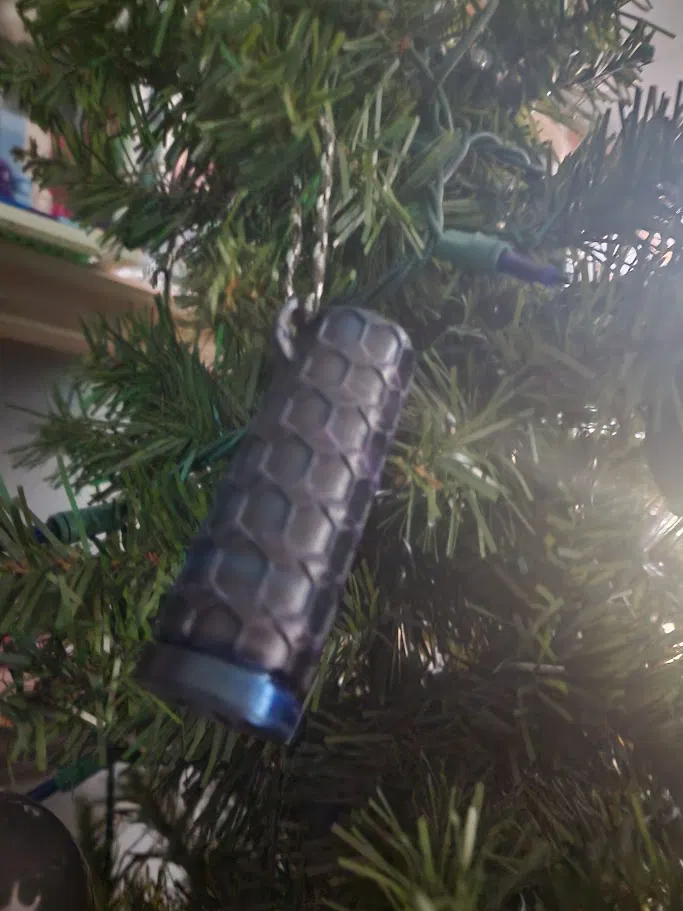 Tui luồn dây paracord 320 qua cái khoen để treo lên cây thông Noel.