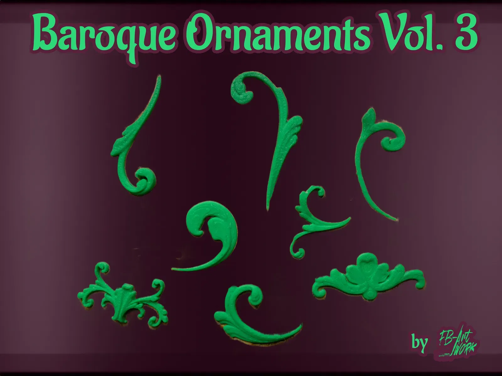 Ai cần các họa tiết baroque làm trang trí cho các công việc thủ công, mô hình hóa, v.v. thì đây là nơi đúng. Tôi đã thêm các họa tiết bất đối xứng vào gói với hai biến thể (bình thường/gương). Một số họa tiết tôi đã giữ khá phẳng, ai thích nó hơi nổi bật hơn có thể tăng kích thước theo trục Z trong chương trình Slicer.