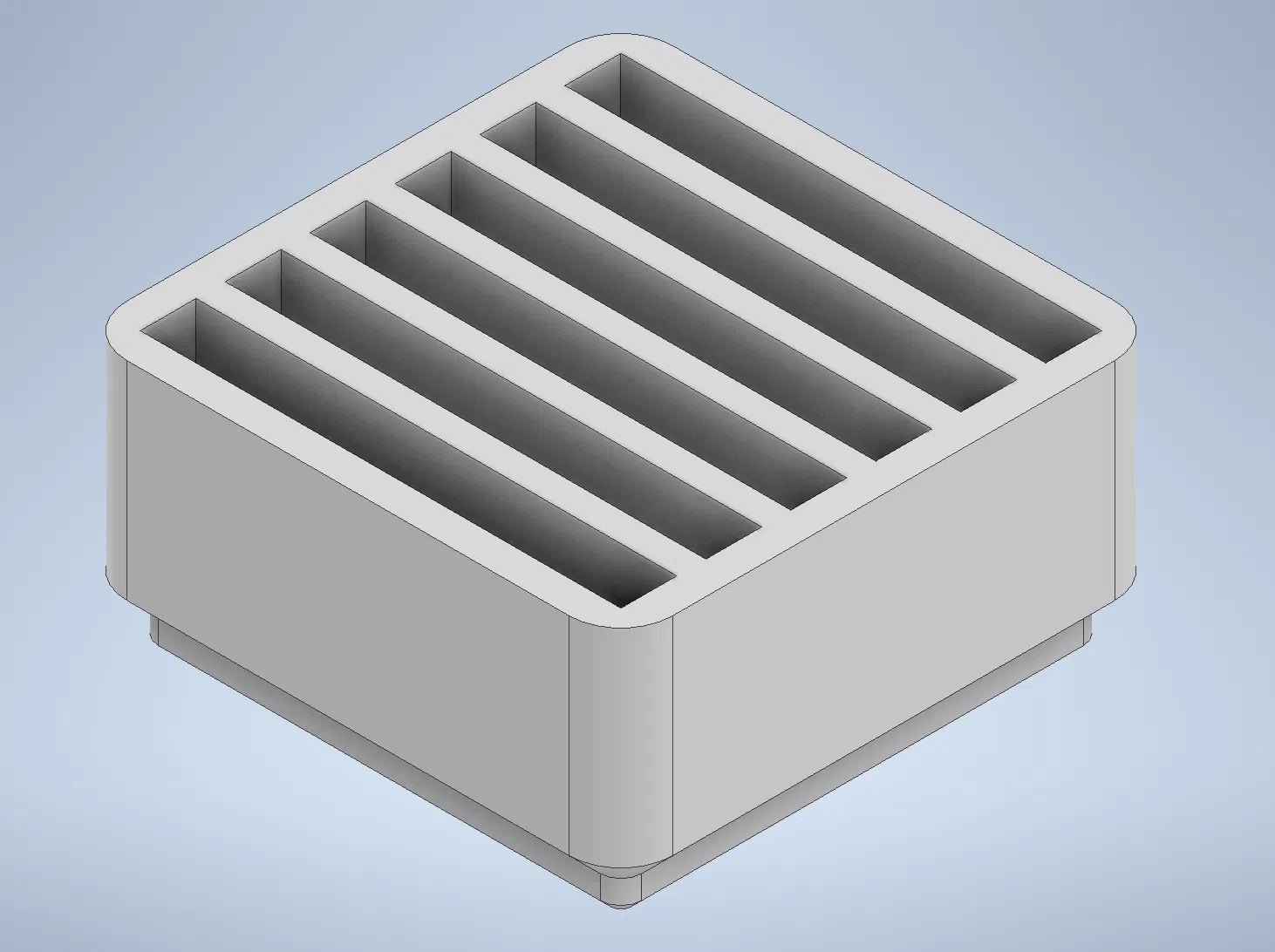 Một hộp Gridfinity được thiết kế để lưu trữ thẻ CF một cách gọn gàng. Kích thước tiêu chuẩn 1x1x3U, phù hợp với hệ thống Gridfinity. Hãy cho tôi biết nếu bạn cần kích thước khác nhé!