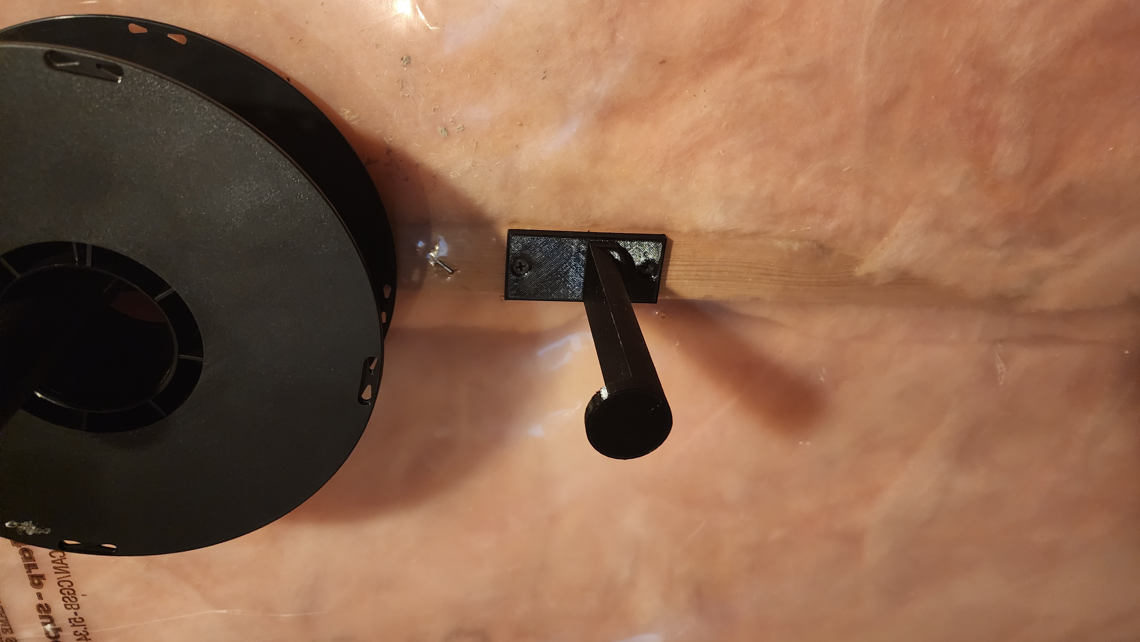 Giá đỡ filament cơ bản, bắt vít trực tiếp vào thanh gỗ. Phiên bản chỉnh sửa cho vừa với thanh gỗ 2 inch, giữ cuộn filament 1kg tốt. Có file Inventor (.ipt) để chỉnh sửa.