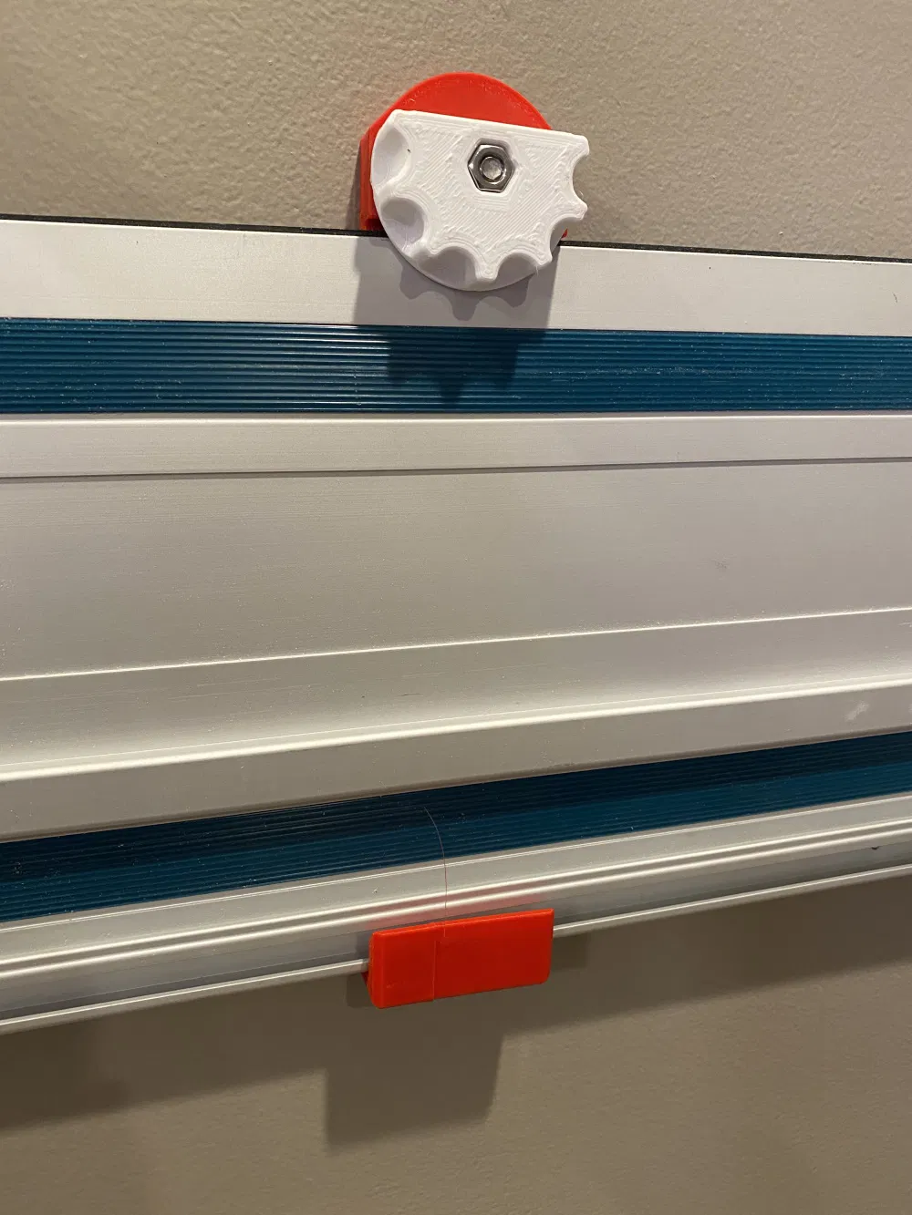 Thiết kế lại hoàn toàn cái kẹp ray dẫn hướng in-place siêu tiện của 3DDIY. Tui muốn treo mấy cái ray lên cửa gara, nên cần cái gì đó cứng cáp và chắc chắn hơn chút. Với lại muốn gắn mấy cái này mà cái mặt cao su úp lên trên để tránh làm hư nó nữa. Nên tui thiết kế cái bản hai mảnh này, y chang cái sản phẩm "cảm hứng" FastCap mà mấy bà mua tới 20 đô/cặp.