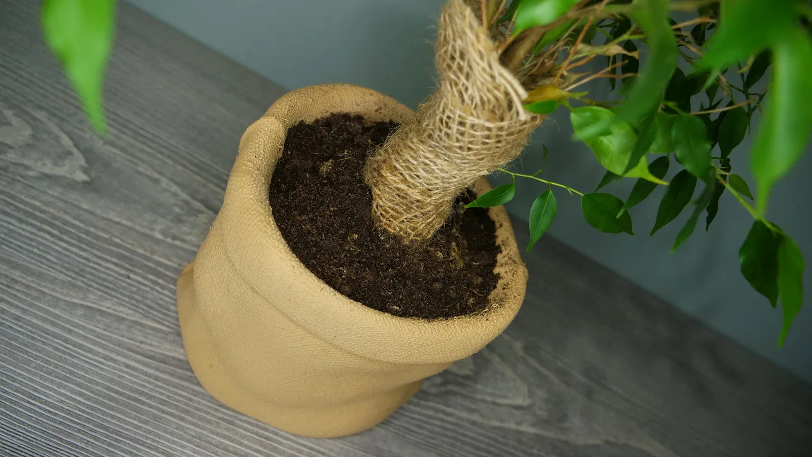 Dễ dàng in chậu trồng cây hình bao bố chân thật. Không cần hỗ trợ, khuyên dùng sợi gỗ hoặc polymaker polywood cho hiệu quả đẹp mắt nhất.
