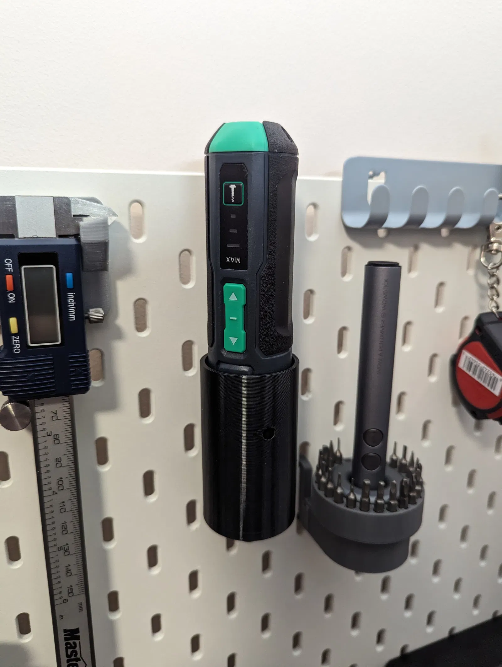 Đây là một đế Ikea Skadis cho Tua vít Denali (thương hiệu Amazon) (https://www.amazon.com/gp/product/B09PFCX8Q1/) mà thực sự là một trong những công cụ tôi xài nhiều nhất trên bàn làm việc của mình.