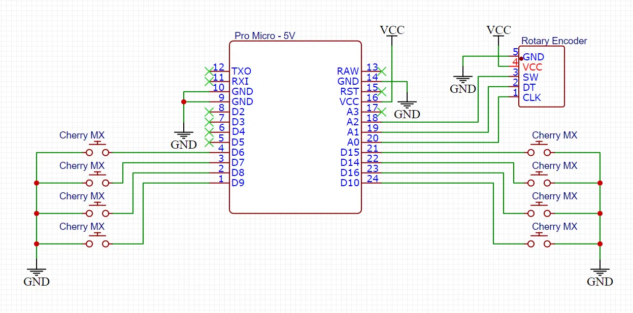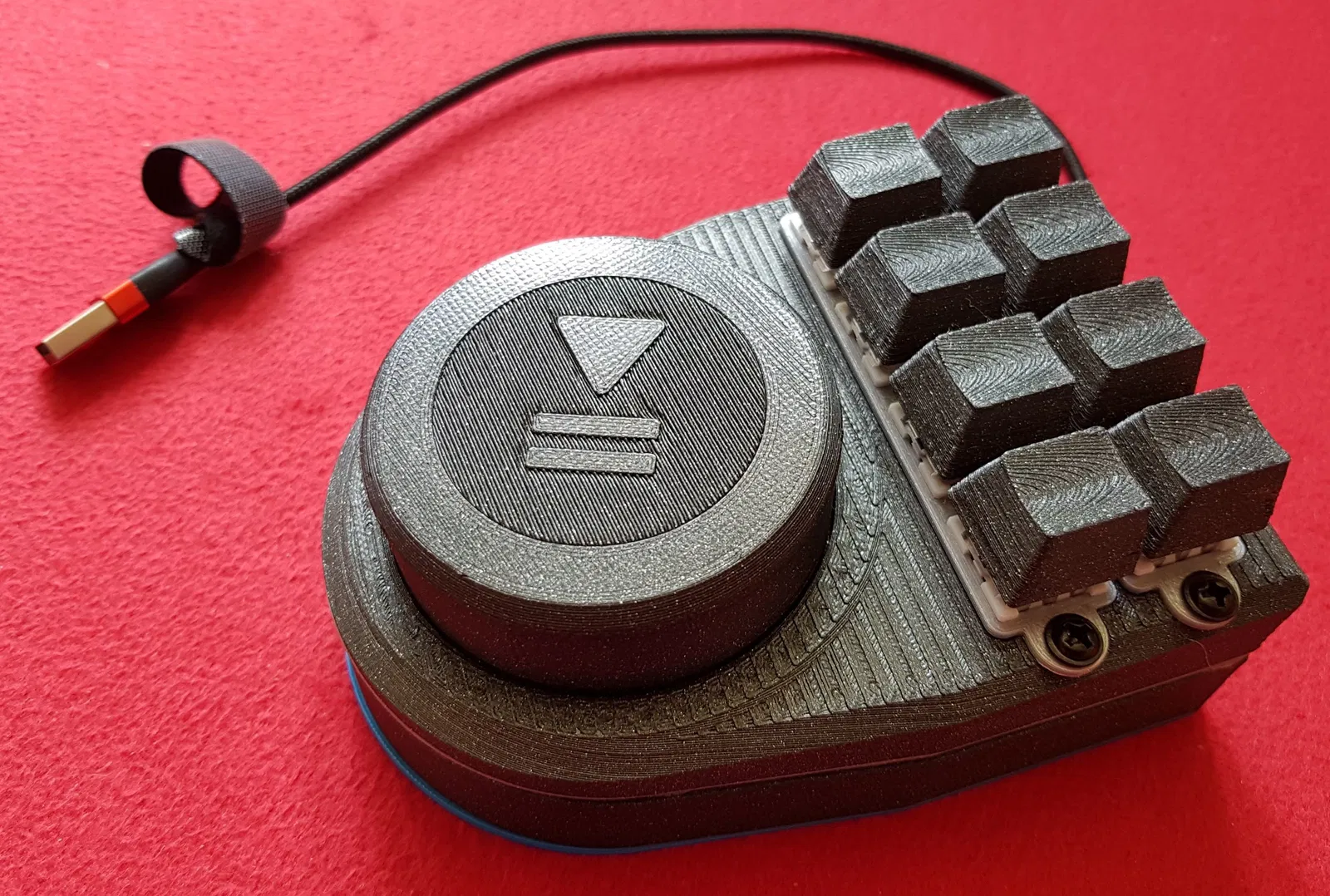 - Có thể mô phỏng bàn phím, phím đa phương tiện, chuột và lệnh hệ thống Dự án này được lấy cảm hứng từ và một số mã được lấy từ Control volume knob by Prusa. ### Phần cứng * 8x Cherry MX - Tôi đã dùng loại màu đỏ