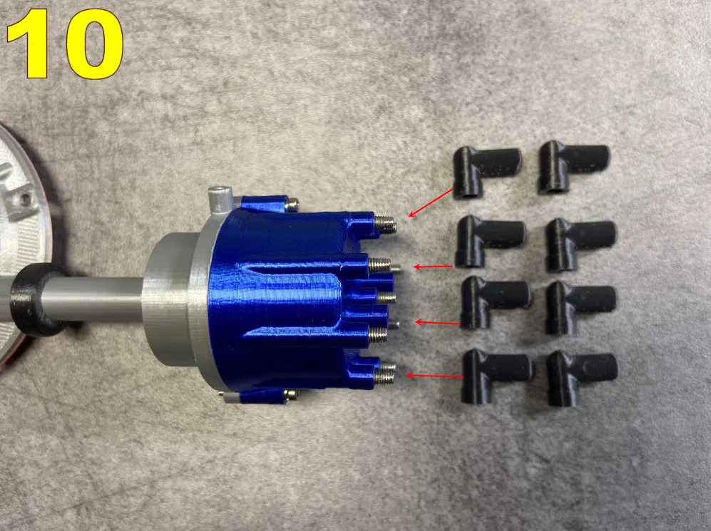 Đây là Nắp Che Thời Gian (Timing Cover) mới và Bộ Phân Phối (Distributor) cho chiếc Ford FlatHead V8 (https://www.thingiverse.com/thing:2537602). Thiết kế này dự kiến sẽ sớm được gắn thêm bộ siêu nạp (supercharger). Việc lắp ráp bộ phận này rất tỉ mỉ; các chi tiết khá mỏng manh, đặc biệt là phần "TimingCoverDistributorTop". Dây đánh lửa (livewires) được cung cấp cho dây điện silicon 3mm. Trên hình ảnh của tui, Nắp Che Thời Gian được gắn bằng ốc vít; nếu nó thay thế cho mẫu gốc thì có thể gắn bằng nam châm đĩa 4mmx2mm. Ngoài gói này, tui còn đăng tải: * Bugi mới vì tui thấy bugi gốc hơi nhỏ