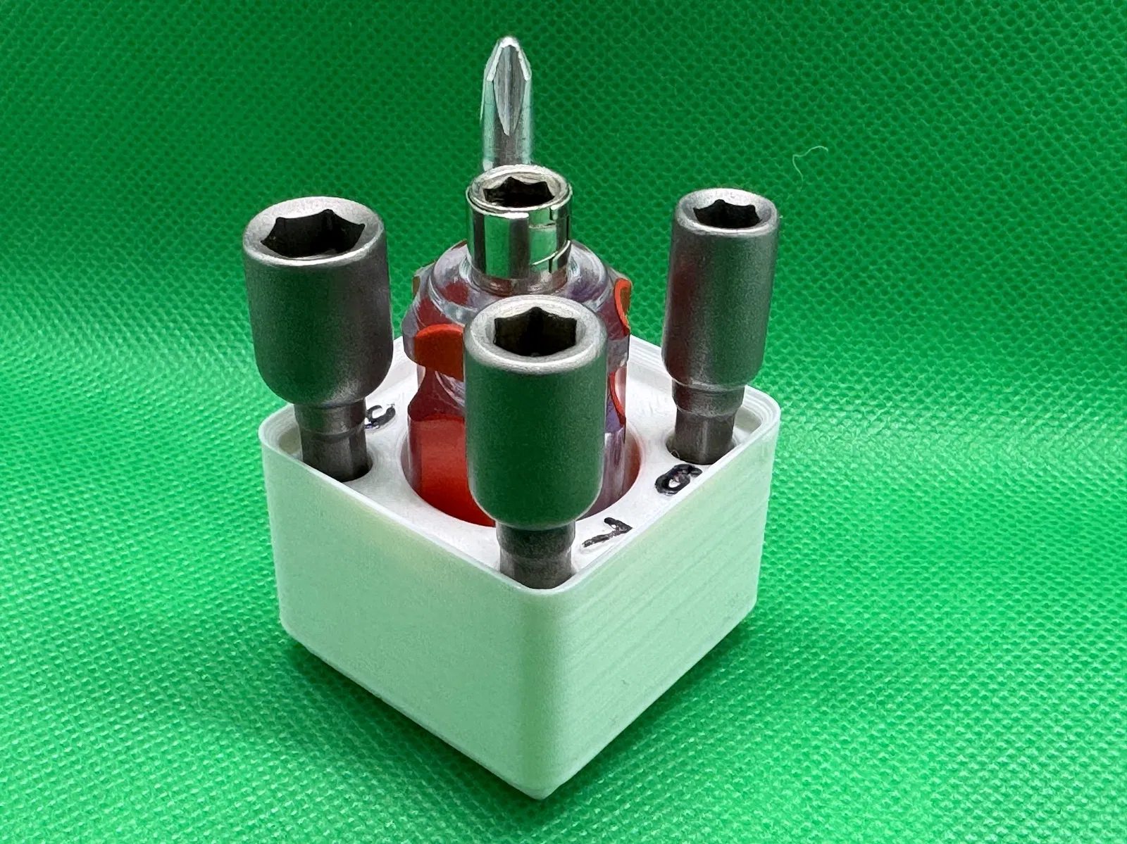 Tao làm cái đế giữ này để giữ mấy cái lục giác cho nó gọn gàng, xài để đổi đầu phun cho mấy kích cỡ khác nhau. Tao không có xài cái cờ lê nên tao không có làm vô.