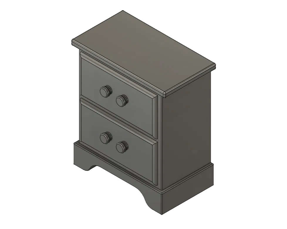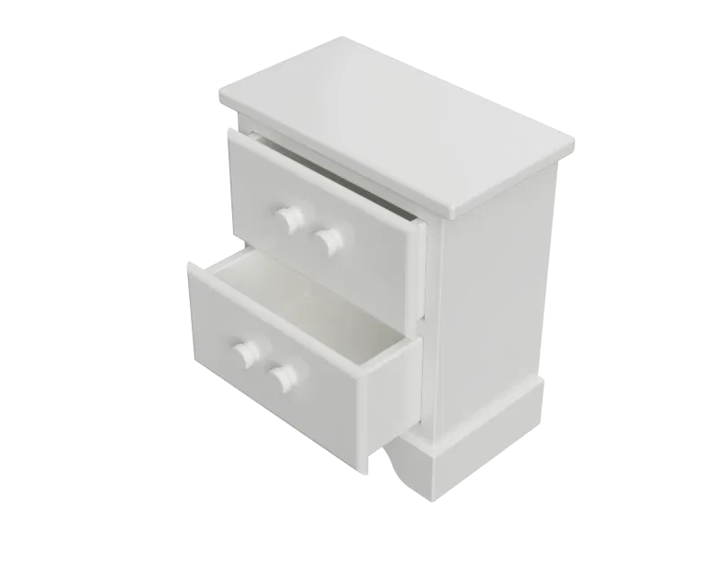 Tủ đầu giường có ngăn kéo tháo rời. Phiên bản nguyên khối cũng có sẵn nếu bạn không cần mở ngăn kéo. Thích hợp cho nhà búp bê hoặc mô hình mini.