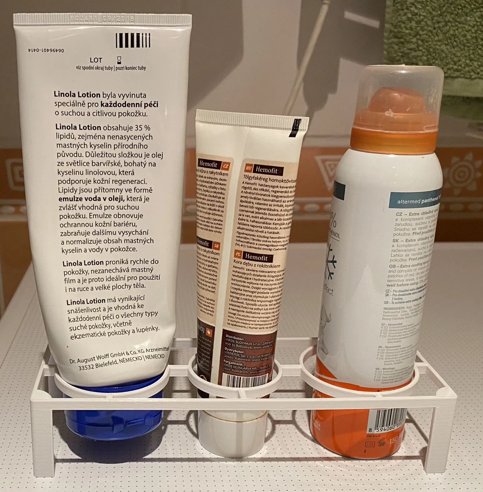 Nếu chai lọ, kem dưỡng và các tuýp khác cứ bị rơi khỏi kệ trong phòng tắm, thì cái giá đỡ này sẽ giúp bạn giữ chúng đứng thẳng. In rất dễ dàng (tối đa 2 giờ).
