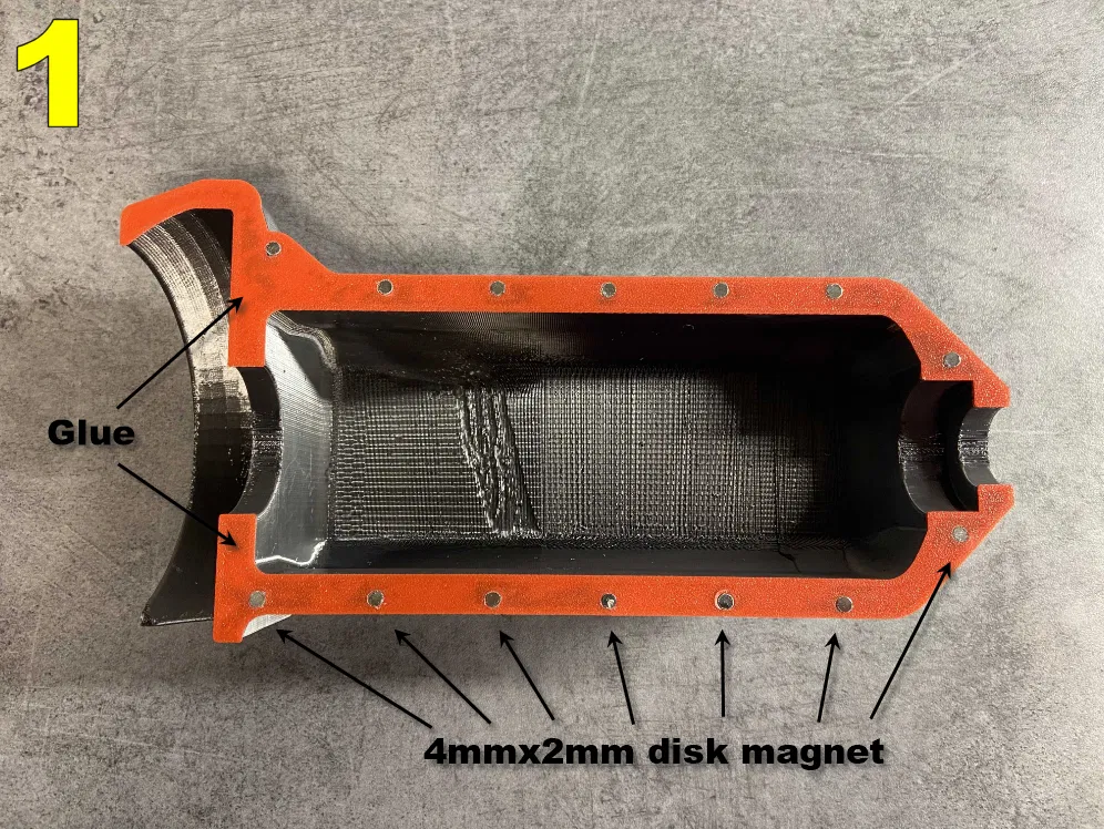 - Vỏ che bộ đề (Starter enclosure) Cài đặt in 1 x Téc-te dầu (OilPan) : Lớp:0.15mm Raft:không Brim:không Hỗ trợ:có Infill:15% 1 x Que thăm dầu (OilPanDipstick) : Lớp:0.15mm Raft:không Brim:không Hỗ trợ:có Infill:100% 1 x Gioăng que thăm dầu (OilPanDipstickGasket) : Lớp:0.15mm Raft:không Brim:không Hỗ trợ:không Infill:100% 1 x Đế giữ que thăm dầu (OilPanDipstickHolder) : Lớp:0.15mm Raft:không Brim:không Hỗ trợ:có Infill:100% 1 x Gioăng 1 (OilPanGasket1) : Lớp:0.15mm Raft:không Brim:không Hỗ trợ:không Infill:80% 1 x Gioăng 2 (OilPanGasket2) : Lớp:0.15mm Raft:không Brim:không Hỗ trợ:không Infill:80% 1 x Gioăng 3 (OilPanGasket3) : Lớp:0.15mm Raft:không Brim:không Hỗ trợ:không Infill:80% 1 x Bộ phận khởi động (OilPanStarter) : Lớp:0.15mm Raft:không Brim:không Hỗ trợ:có Infill:30% 1 x Mặt sau bộ đề (StarterBack) : Lớp:0.15mm Raft:không Brim:không Hỗ trợ:không Infill:30% 1 x Đầu nối bộ đề (StarterConnector) : Lớp:0.15mm Raft:không Brim:không Hỗ trợ:không Infill:100% 1 x Bánh răng bộ đề (StarterDriveGear) : Lớp:0.15mm Raft:không Brim:không Hỗ trợ:không Infill:100% 1 x Mặt trước bộ đề (StarterFront) : Lớp:0.15mm Raft:không Brim:không Hỗ trợ:không Infill:100% Phụ kiện 18 x nam châm đĩa 4mmx2mm 3 x vít lục giác m2x3mm (SHCS) 3 x vòng đệm khóa m2 (lock washer) 14 x vít lục giác m3x2mm (SHCS) 1 x vít lục giác m3x45mm (SHCS) 3 x vít lục giác m3x8mm (SHCS) 1 x đai ốc hãm m4 (jam nut) 1 x vít định vị m3 (set screw) 1 x Dây điện 150mm 1 x Động cơ điện (electric motor): https://www.amazon.fr/gp/product/B072X7CSNS/ref=ppx_yo_dt_b_search_asin_title?ie=UTF8&psc=1 1 x Vỏ bọc bện 3mm-8mm (Braided sheath): https://www.amazon.fr/gp/product/B07F8YRY3T/ref=ppx_yo_dt_b_search_asin_title?ie=UTF8&psc=1 1 x Jack cắm (jack connector): https://www.amazon.fr/gp/product/B07QPZTHDK/ref=ppx_yo_dt_b_asin_title_o00_s00?ie=UTF8&psc=1 ### Lắp ráp Xem hình ảnh. ### Thêm các bộ phận bổ sung