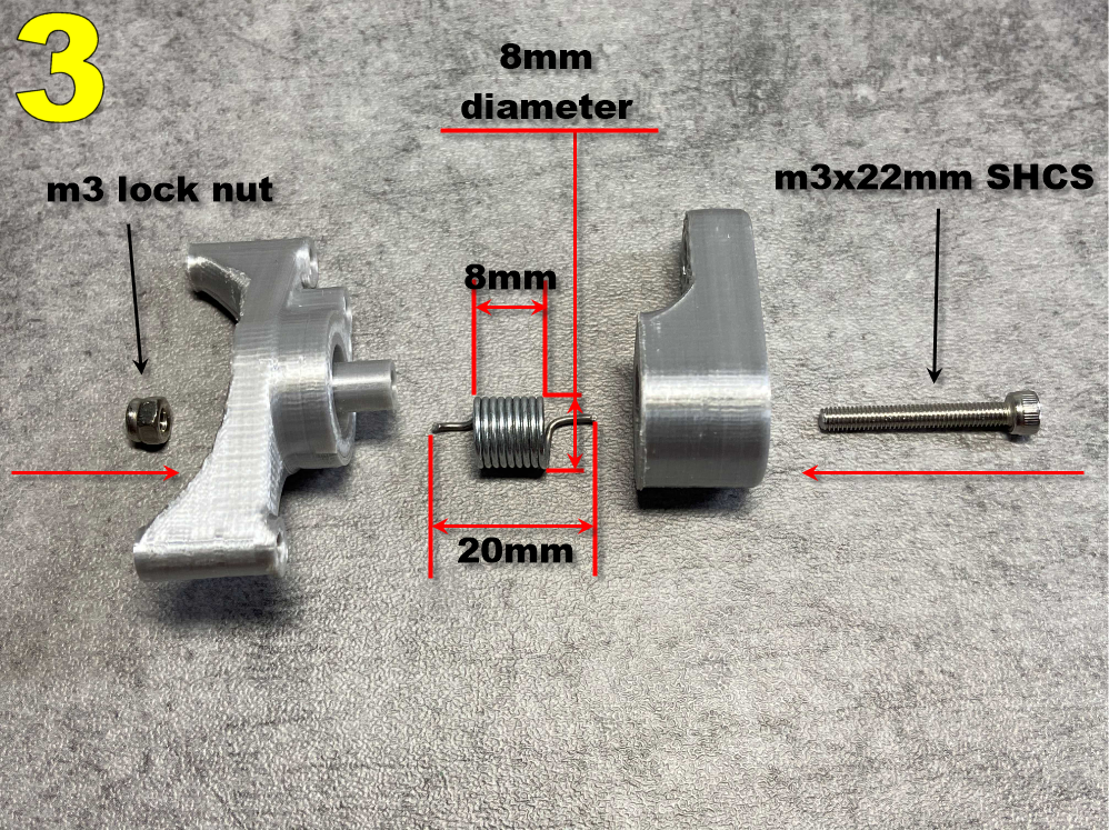 Đây là bộ phận Tensioner Pulley mở rộng cho động cơ Ford FlatHead V8 (https://www.thingiverse.com/thing:2537602). Thiết kế này dự kiến sẽ sớm được gắn thêm bộ siêu nạp (supercharger). /!\ Hãy tải về phiên bản mới nhất của bản sửa đổi Waterpump () ; các puly sẽ nhỏ hơn một chút. Cài đặt in 1 x TensionerHolder : Layer:0.15mm Raft:không Brim:không Support:có Infill:100% 1 x TensionerLever : Layer:0.15mm Raft:không Brim:không Support:có Infill:100% 1 x TensionerPulley : Layer:0.15mm Raft:không Brim:không Support:có Infill:100% Phụ kiện 2 x vòng bi 623zz 1 x m3x3mm SHCS 3 x m3x20mm SHCS 1 x m3x22mm SHCS 1 x m3 jam nut 2 x m3 lock nut 1 x lò xo (xem hình số 3) ### Lắp ráp Xem hình. ### Thêm các bộ phận khác