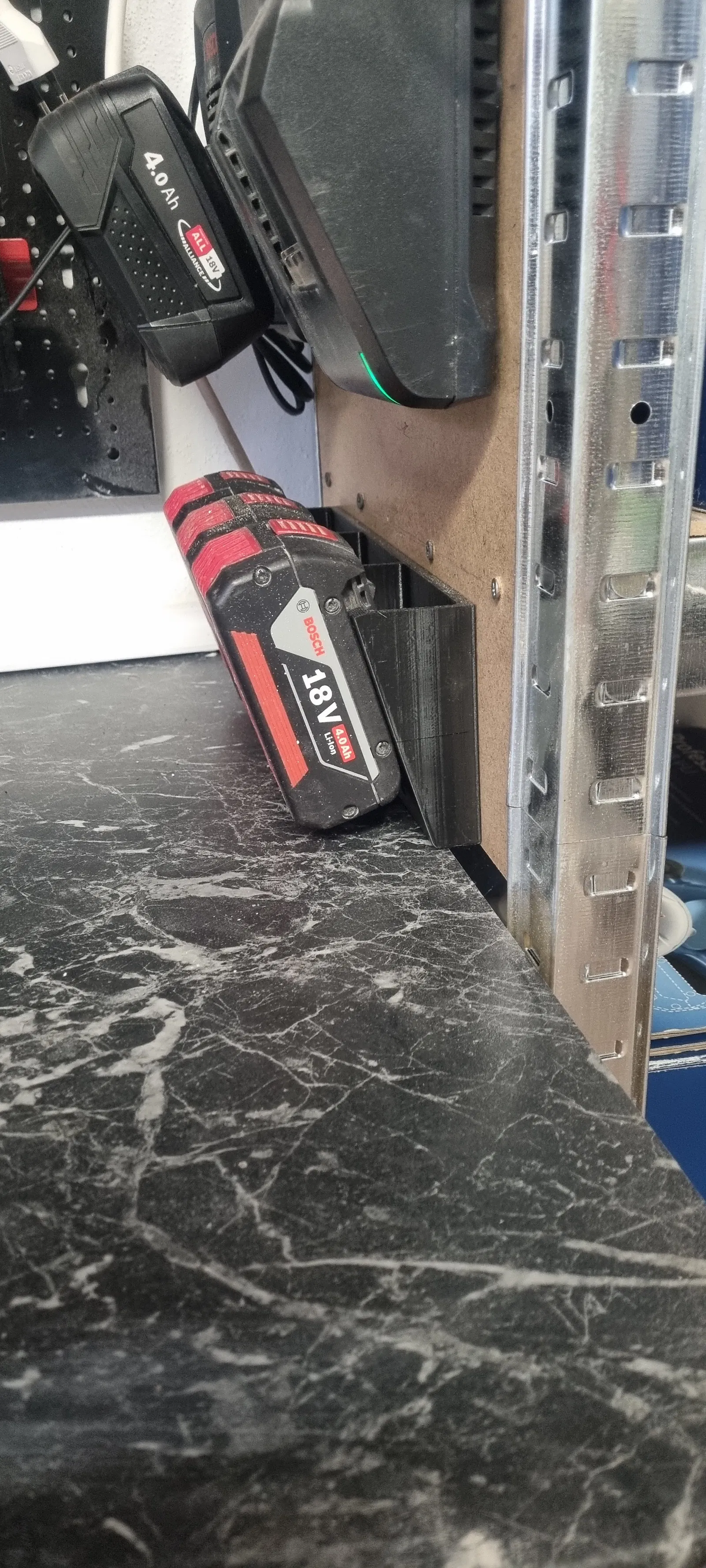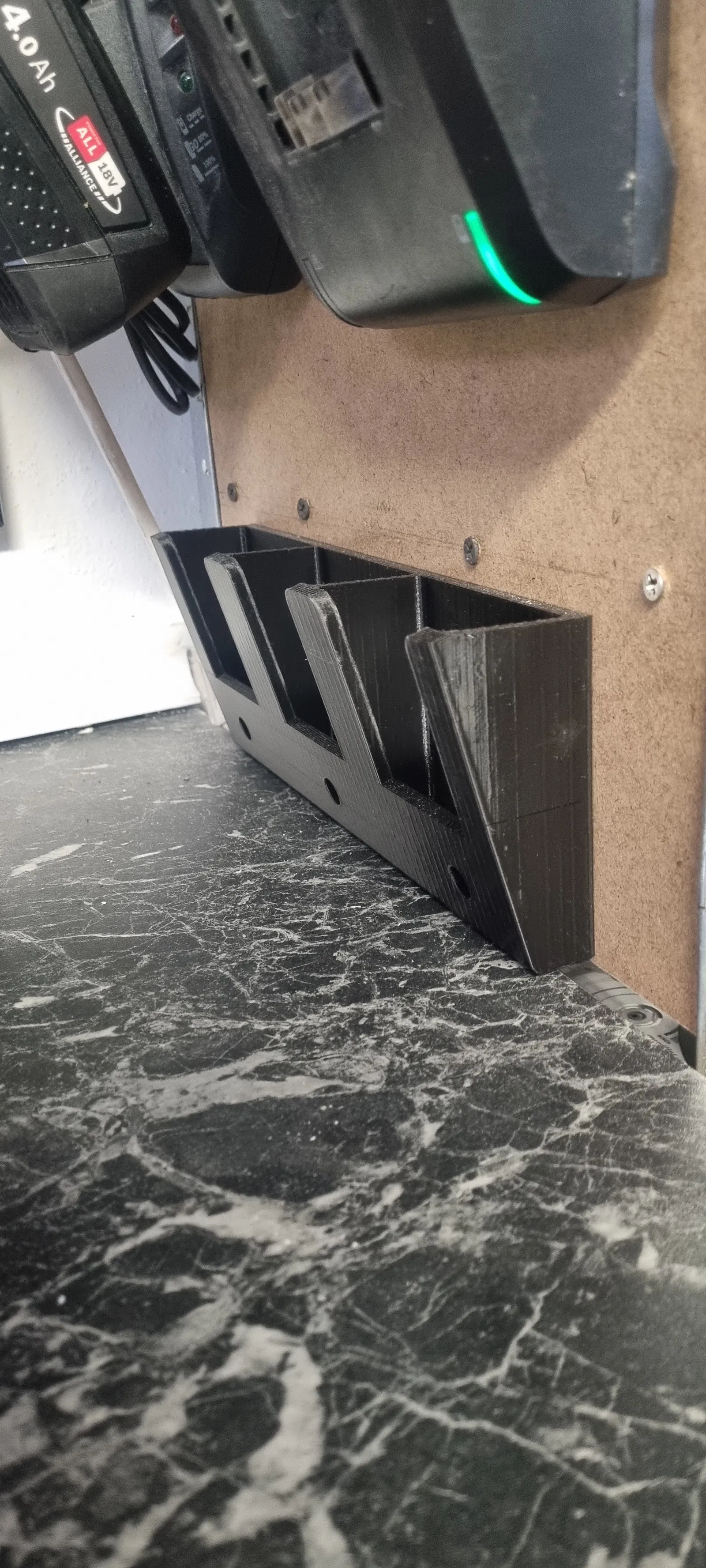 Cái đế này là để đựng 3 cục pin Bosch 18V đó. Thiết kế gọn gàng, tiện lợi cho anh em xài pin Bosch 18V, giúp quản lý pin hiệu quả hơn. In bằng PLA cho chắc chắn.