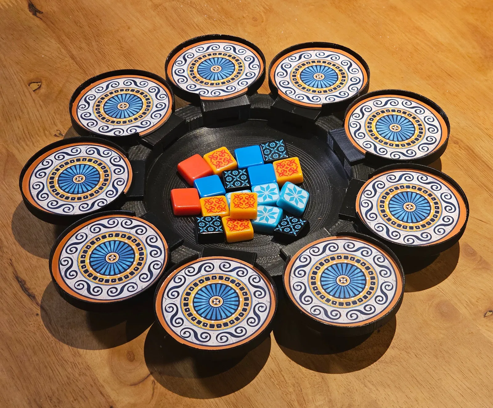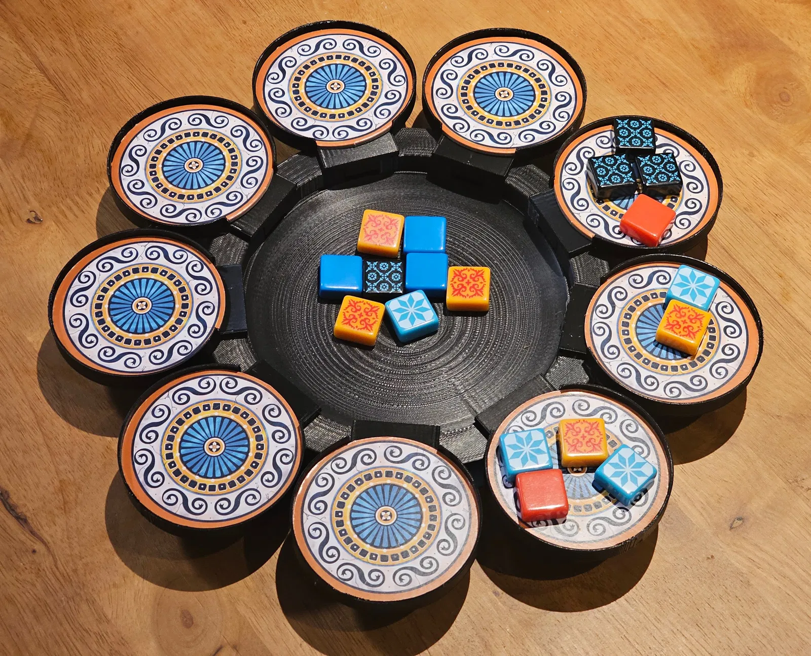 Các cốc cần được in với giá đỡ. Các đĩa bìa cứng đi kèm với bàn cờ nên vừa khít bên trong.