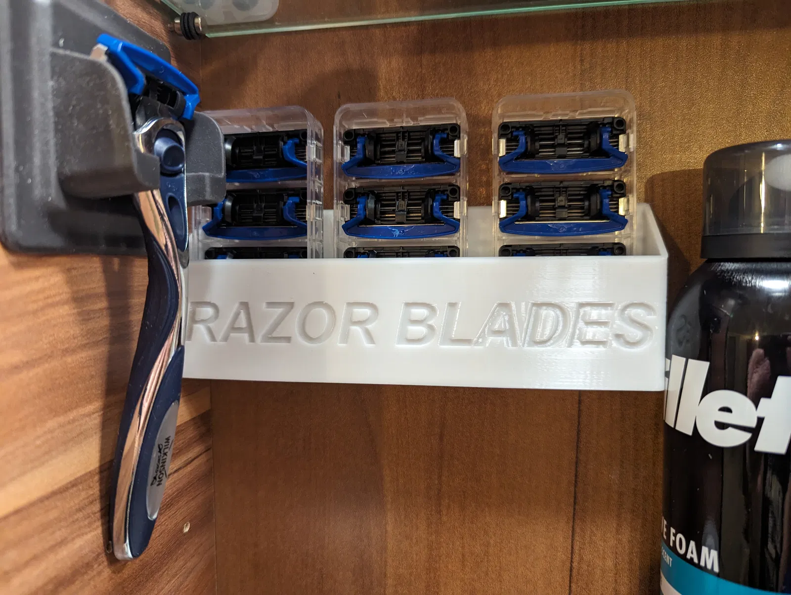 Giá đỡ lưỡi dao cạo, Razorblade Holder làm từ nhựa PETG trắng Sunlu. Bạn có thể gắn vào tủ bằng 2 ốc vít hoặc băng keo hai mặt.