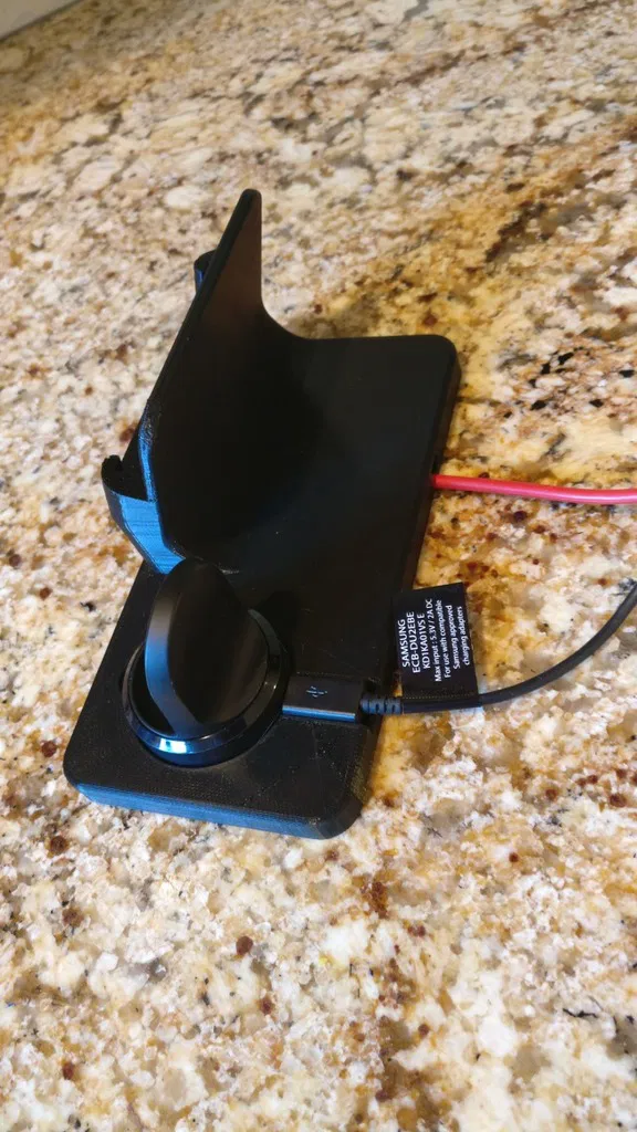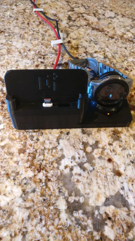 Đế sạc remix từ OnePlus 6/6T, tích hợp thêm chỗ để sạc đồng hồ Samsung Galaxy/Gear. Thiết kế thông minh, vừa vặn cho điện thoại cả khi đang ốp lưng. In bằng PLA hoặc ABS, hỗ trợ supports, infill 15%, độ phân giải 0.2.