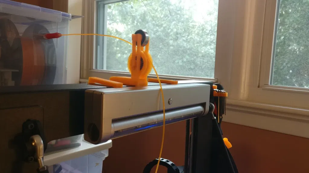 Phiên bản tùy chỉnh của bộ dẫn hướng sợi dây có vòng bi cho máy in Wanhao Duplicator i3 và các máy tương tự. Sử dụng vòng bi 608ZZ, cần in 1 puli, 1 kẹp, 4 vòng đệm và 2 trục. Lưu ý điều chỉnh dung sai cho puli tùy theo máy in.