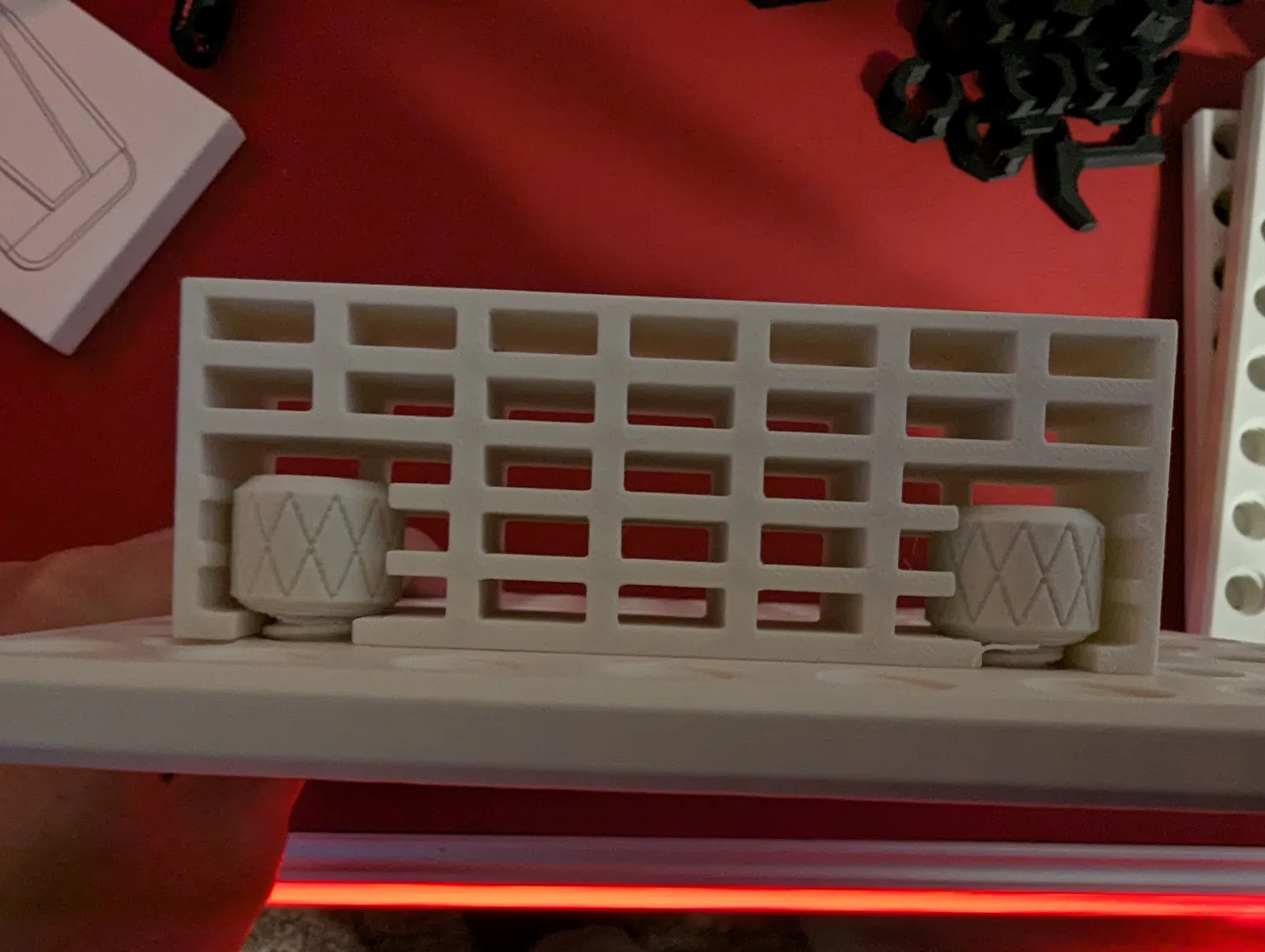 Cái này được làm để luồn vào mấy con ốc đã được vặn sẵn. Vặn hai con ốc cách nhau 5 lỗ rồi luồn cái đế USB này vô là xong.