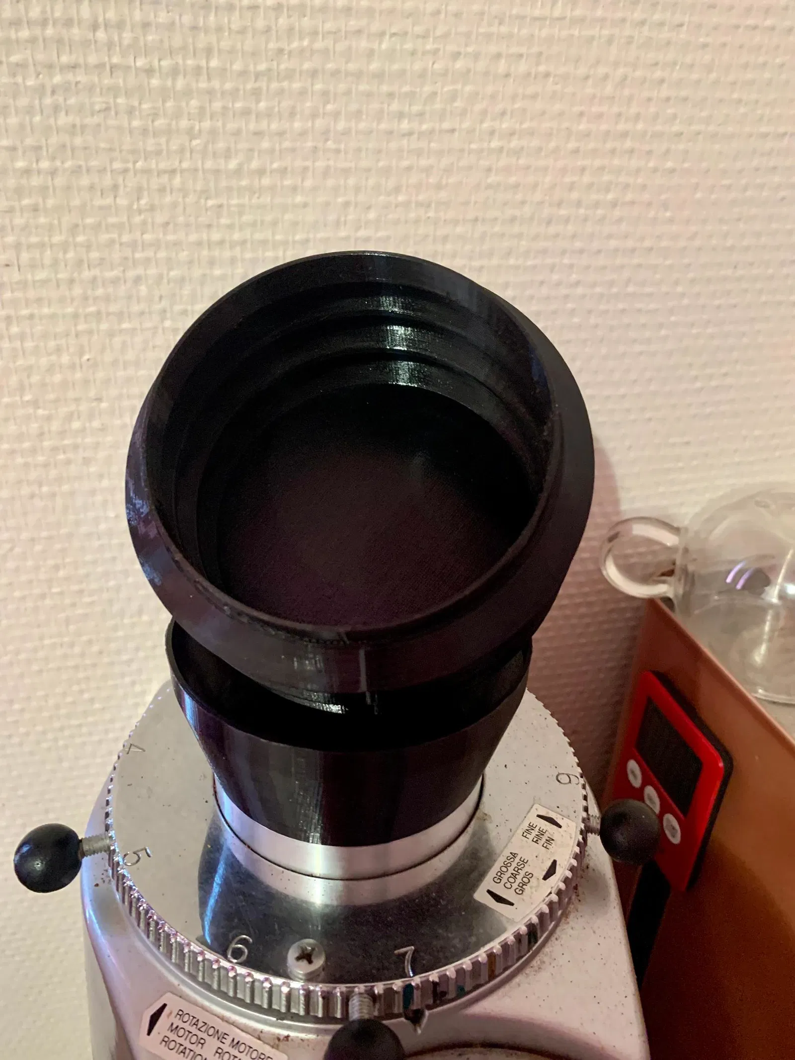 Bộ phận ống bễ và dẫn hướng cổ xay cho máy xay cà phê Mazzer Major, giúp đạt độ lưu giữ cà phê xay bằng không. Thiết kế vừa khít, dễ dàng sử dụng và lắp đặt. Bao gồm cả file f3d để chỉnh sửa. Khuyến nghị cài đặt in và vật liệu cho kết quả tốt nhất.