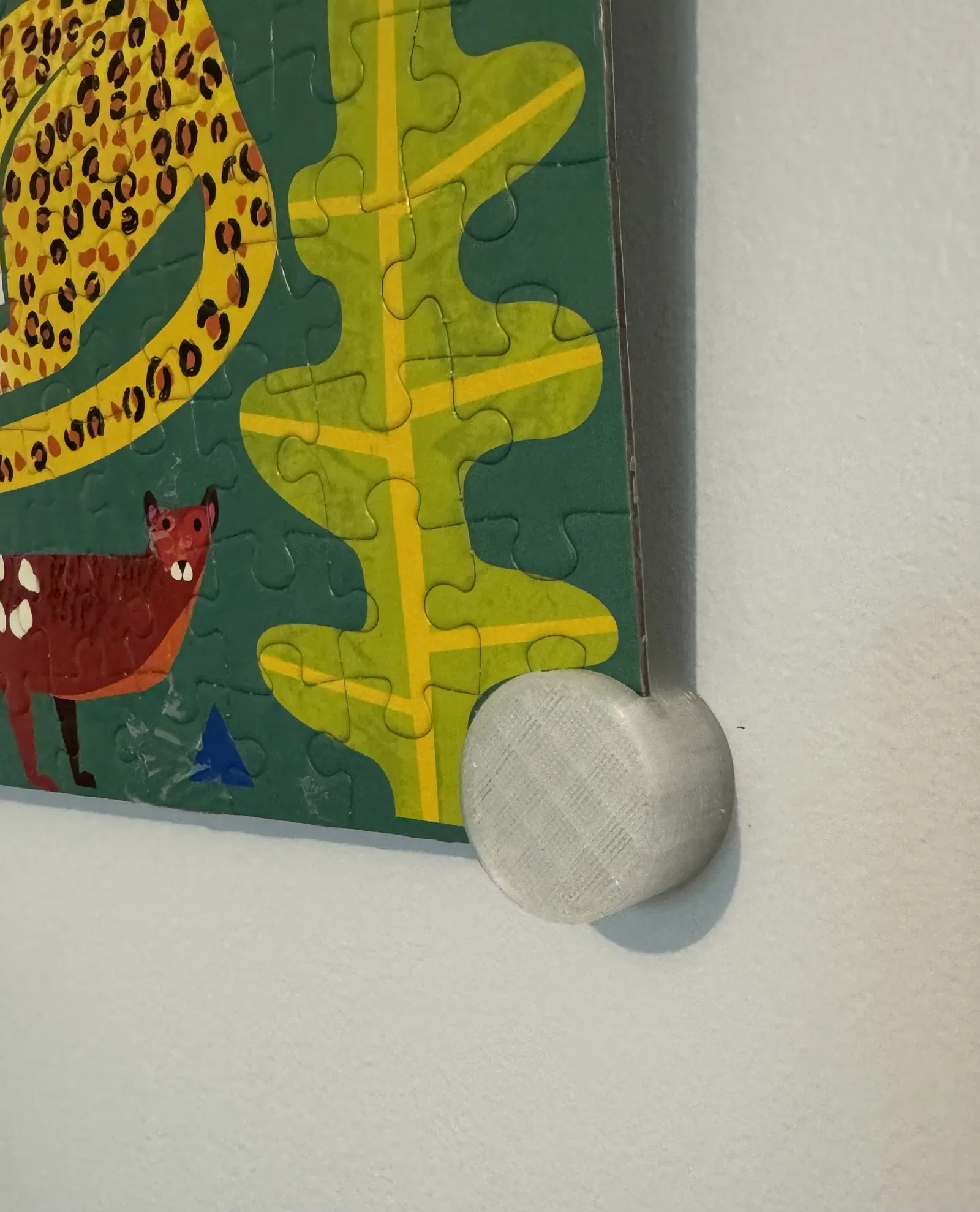 Mấy cái móc treo này có phần khe sâu nhất hơi thắt lại một chút chỗ để bỏ góc miếng ghép hình vô. Điều này giúp chúng có thể ép chặt vào các góc của miếng ghép hình, nên chúng sẽ không bị rơi ra lúc mình đang treo lên tường.